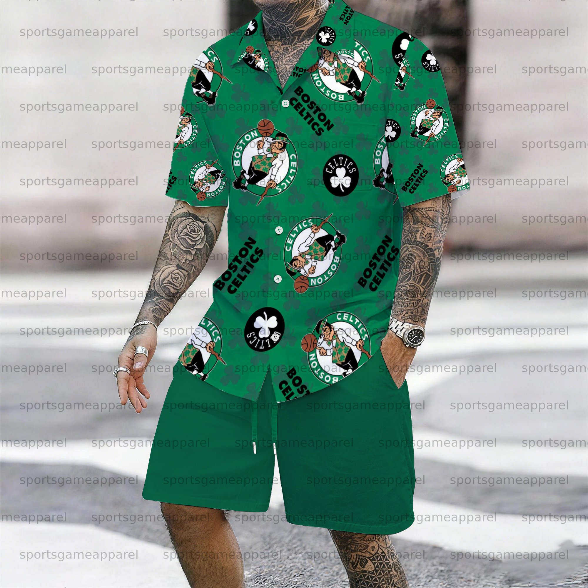 Men's “Boston Celtics " Short-sleeved Shirt Set