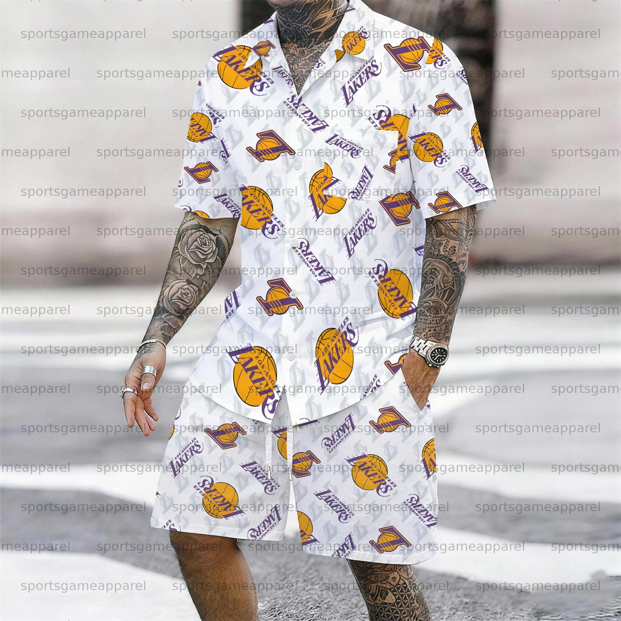 Men's “Los Angeles Lakers" Short-sleeved Shirt Set