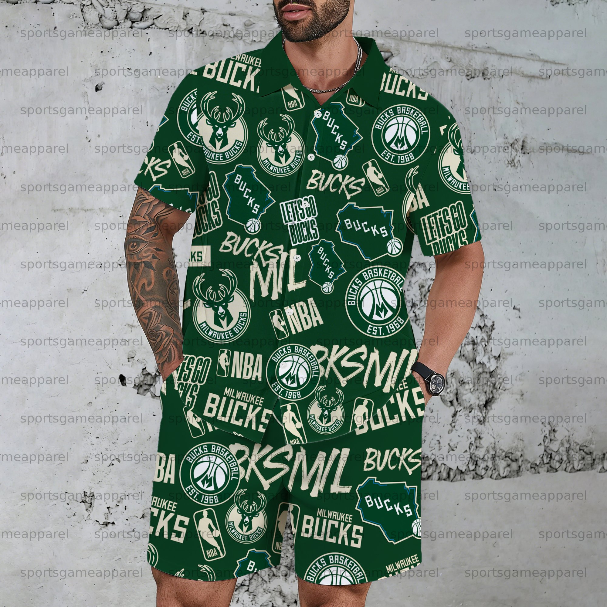 Men's “Milwaukee Bucks " Short-sleeved Shirt Set