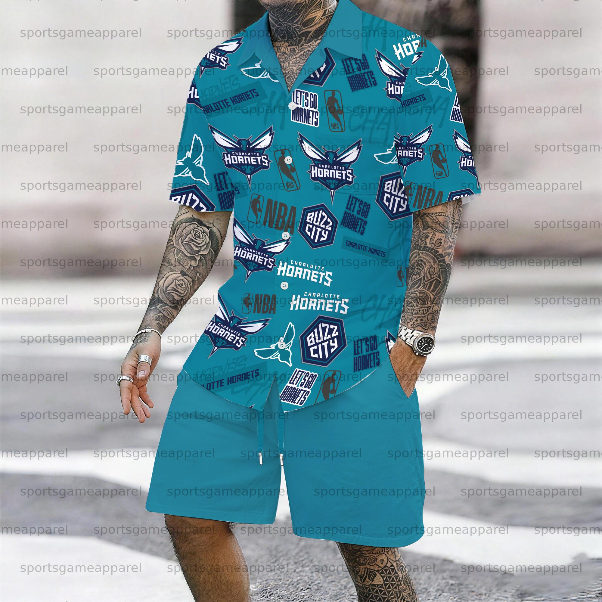 Men's “Charlotte Hornets " Short-sleeved Shirt Set