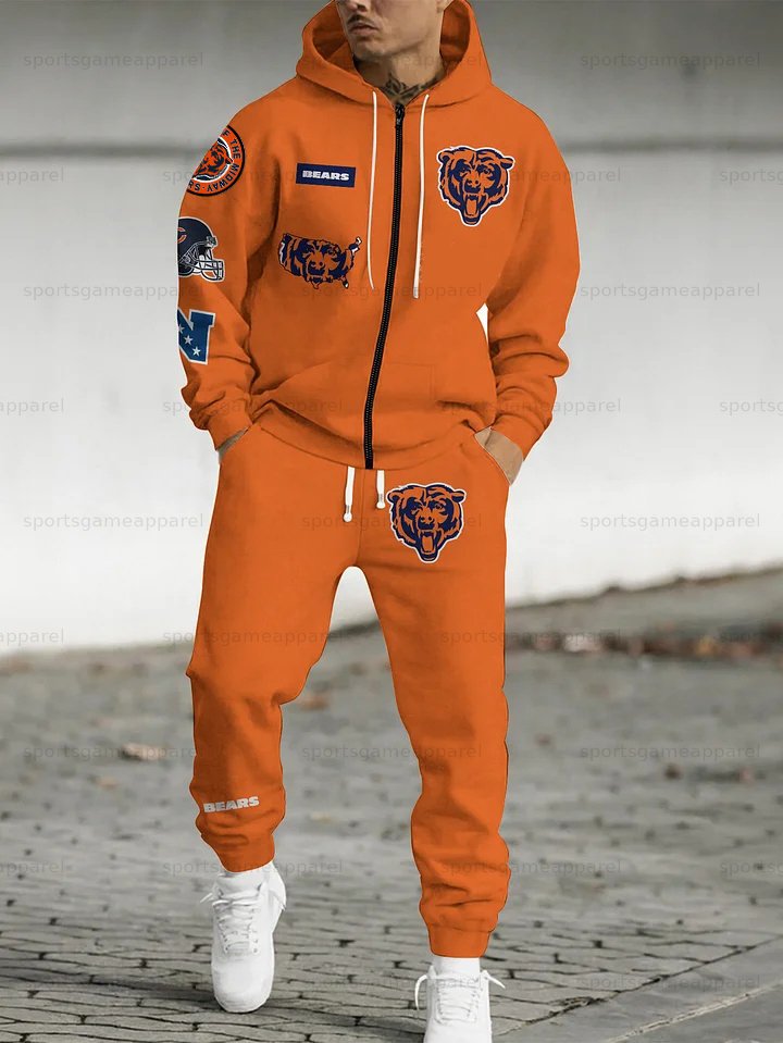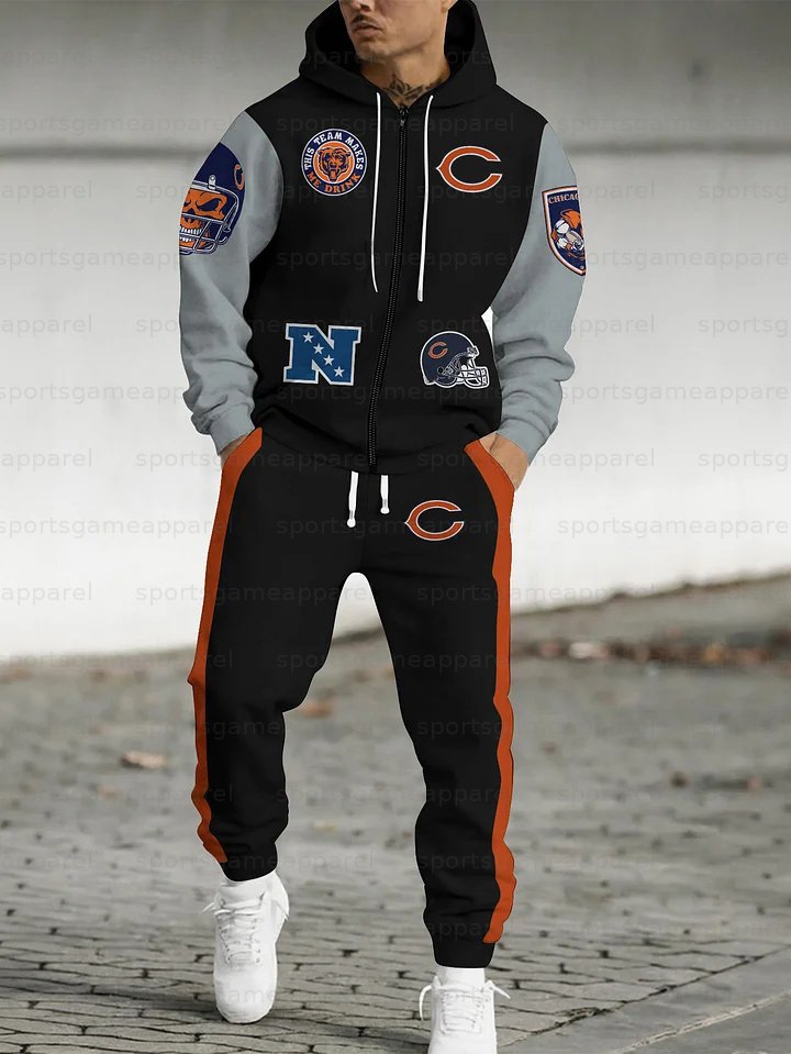 (Fleece-Lined Zip-up Hoodie)Chicago Bears Zip-up Hoodie & Pants 2 Pieces Set
