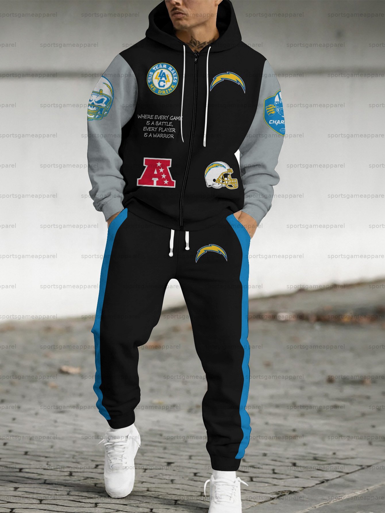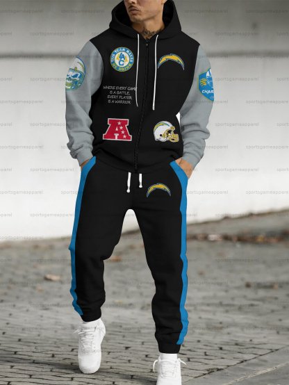 (Fleece-Lined Zip-up Hoodie) Los Angeles Chargers Zip-up Hoodie & Pants 2 Pieces Set