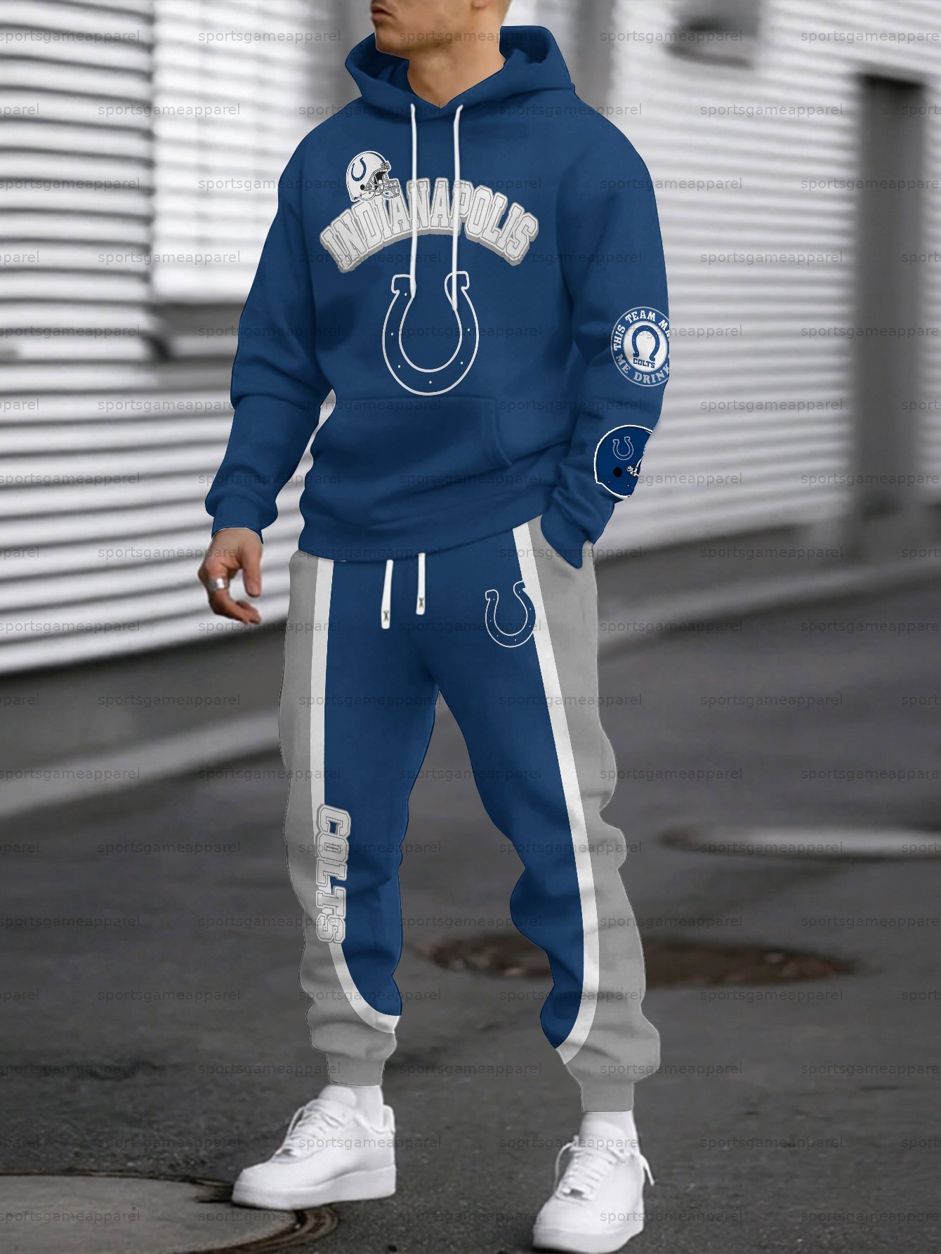 (Fleece-Lined Hoodie) Indianapolis Colts Hoodie & Pants 2 Pieces Set