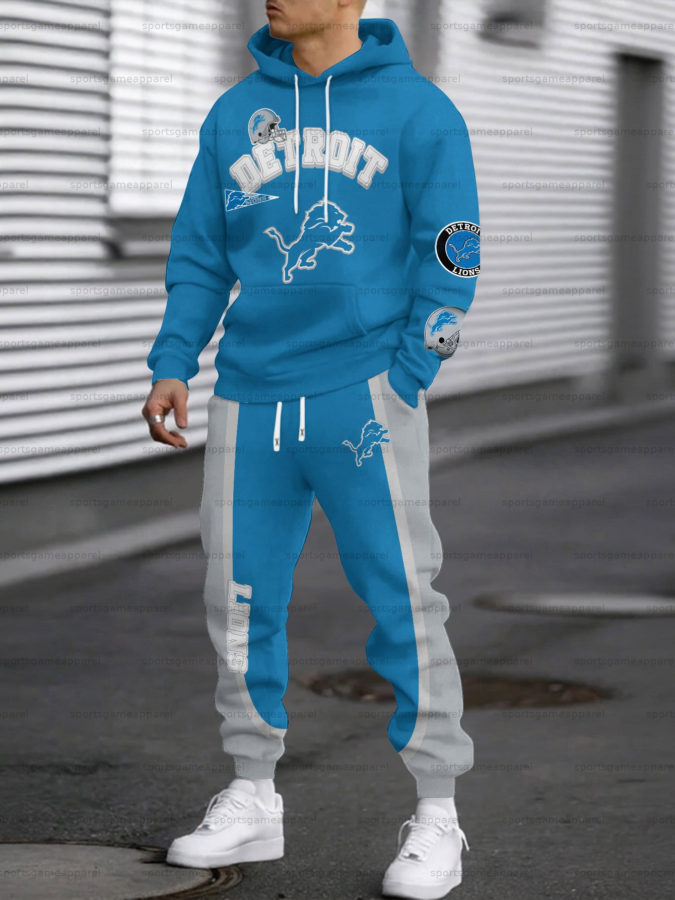 (Fleece-Lined Hoodie) Detroit Lions Hoodie & Pants 2 Pieces Set