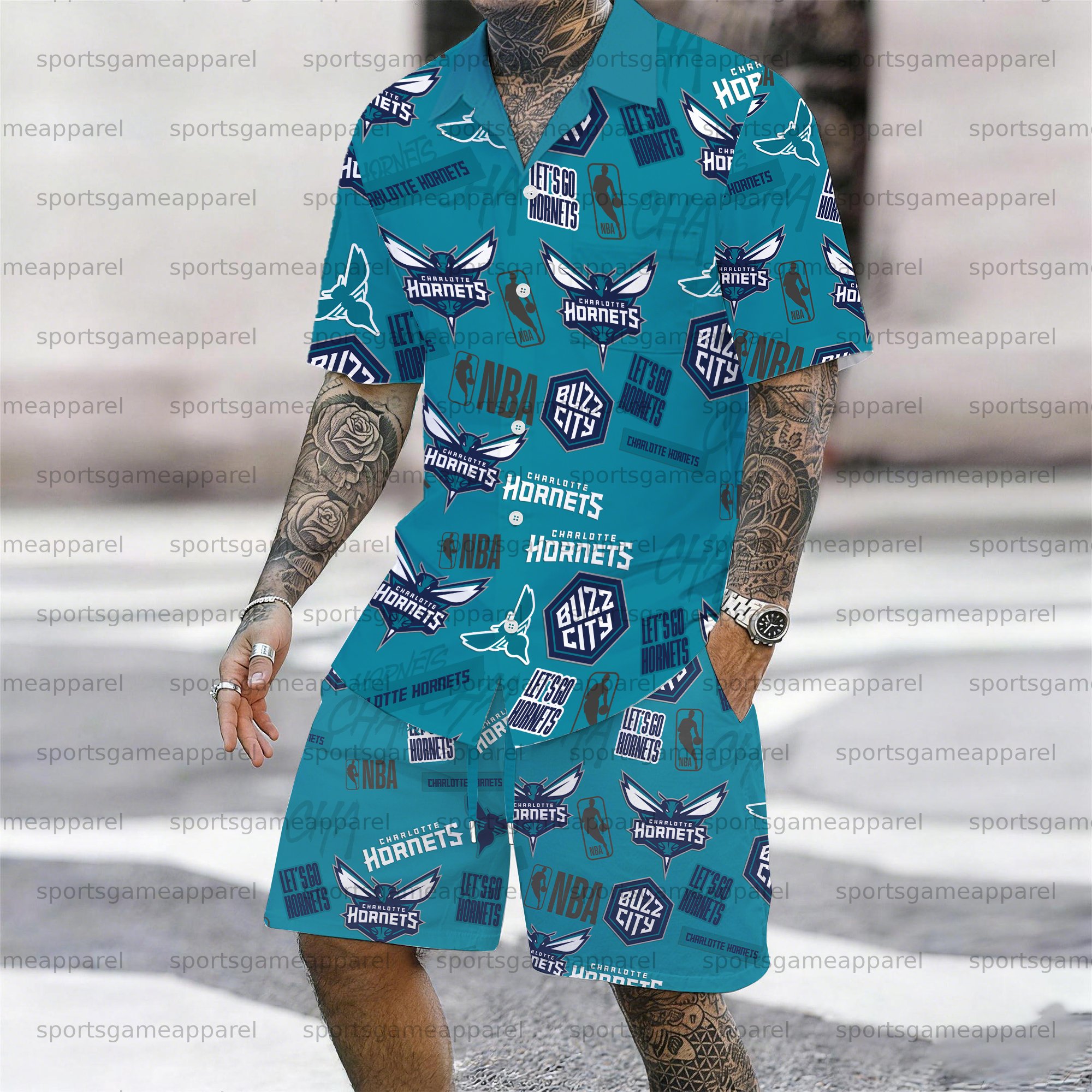 Men's “Charlotte Hornets " Short-sleeved Shirt Set