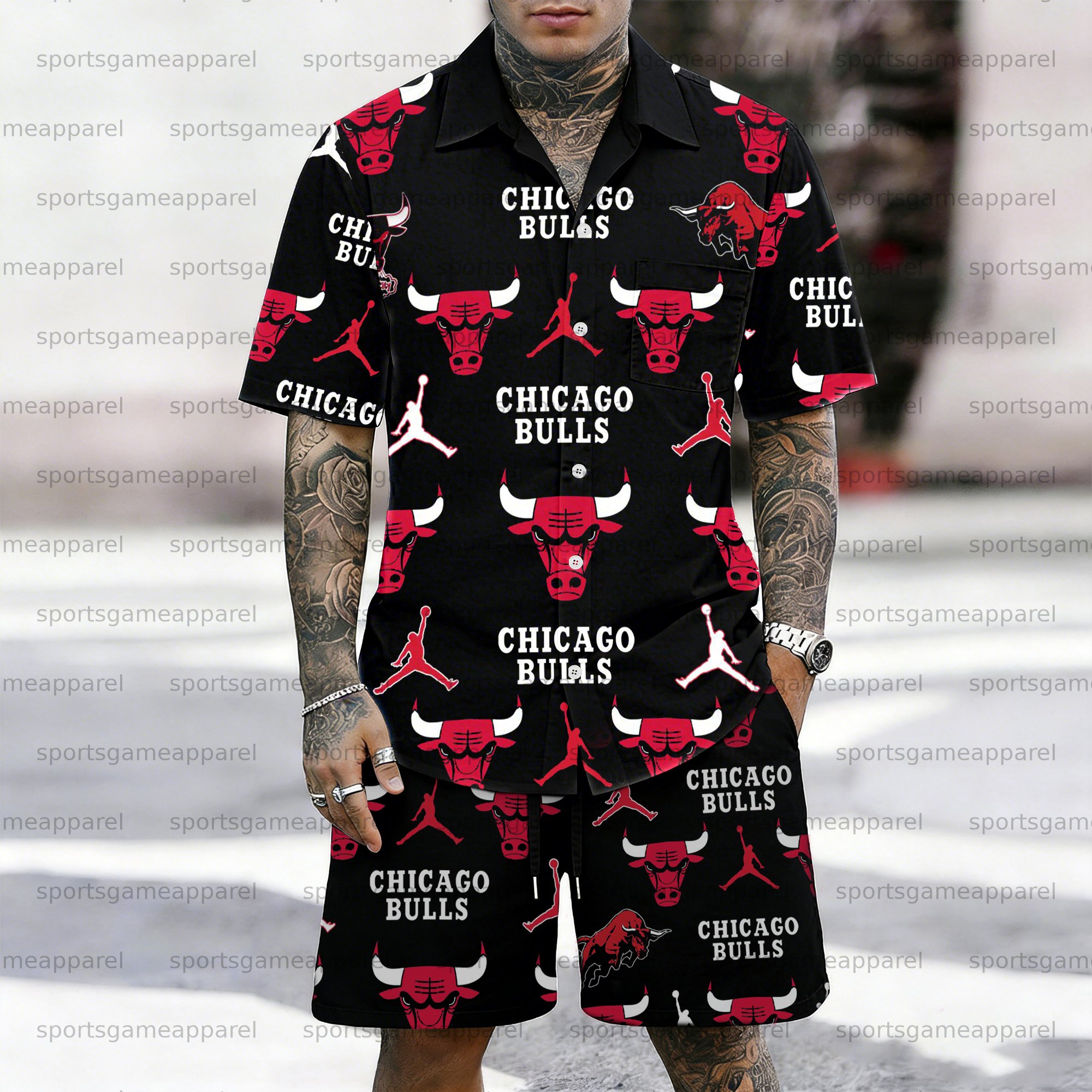 Men's “Chicago Bulls" Short-sleeved Shirt Set