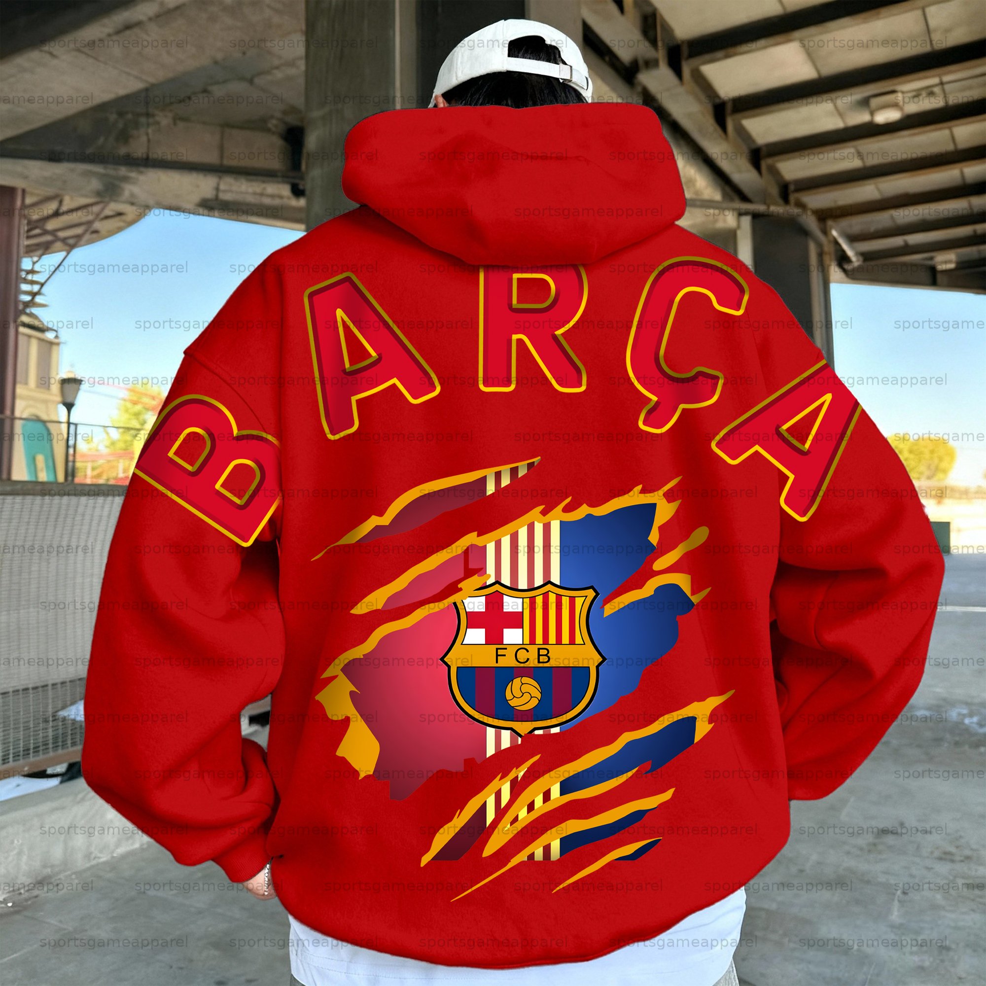 Unisex "FC Barcelona" Graphic Streetwear Vintage Plush Hoodie