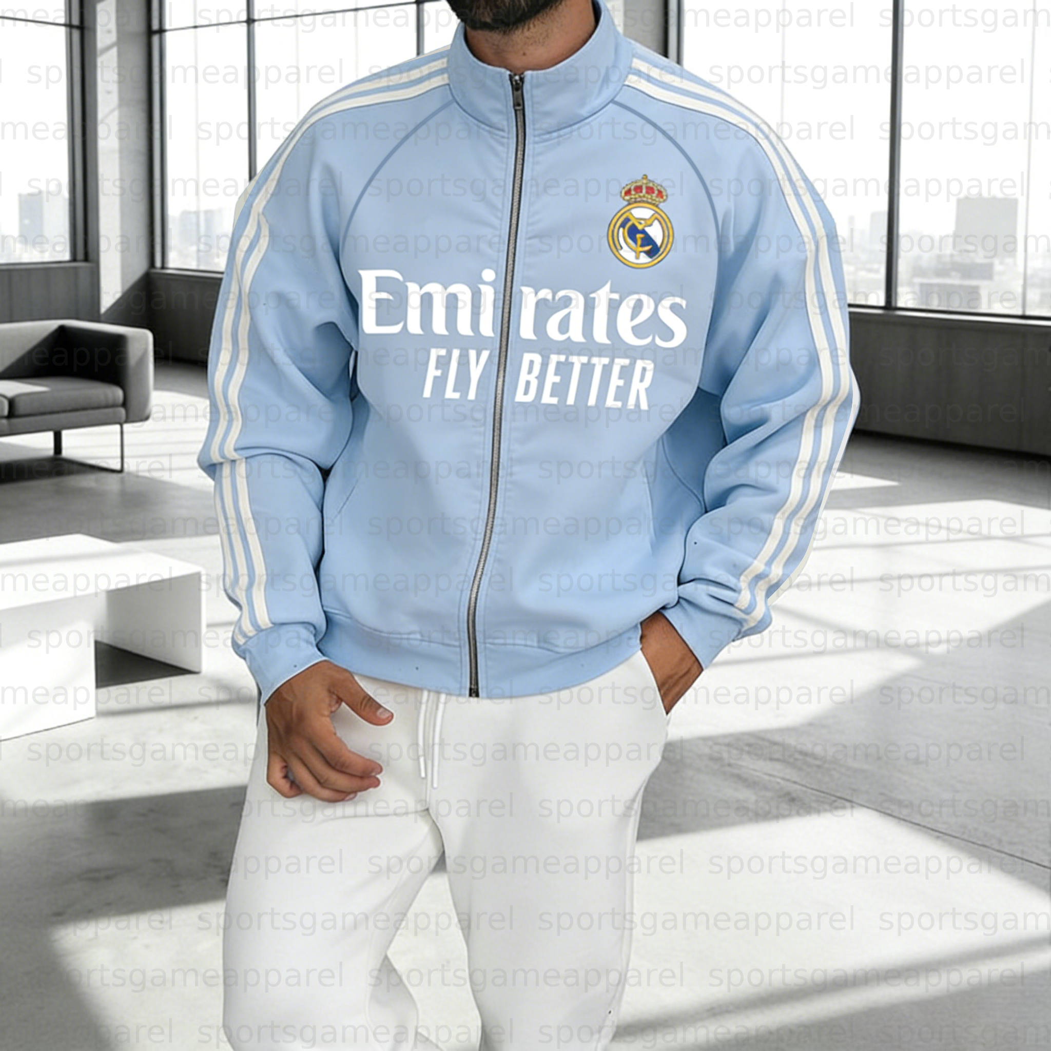 Unisex "Real Madrid" Graphic Streetwear Vintage Stand-collar Raglan Sleeve Zip-up Cardigan