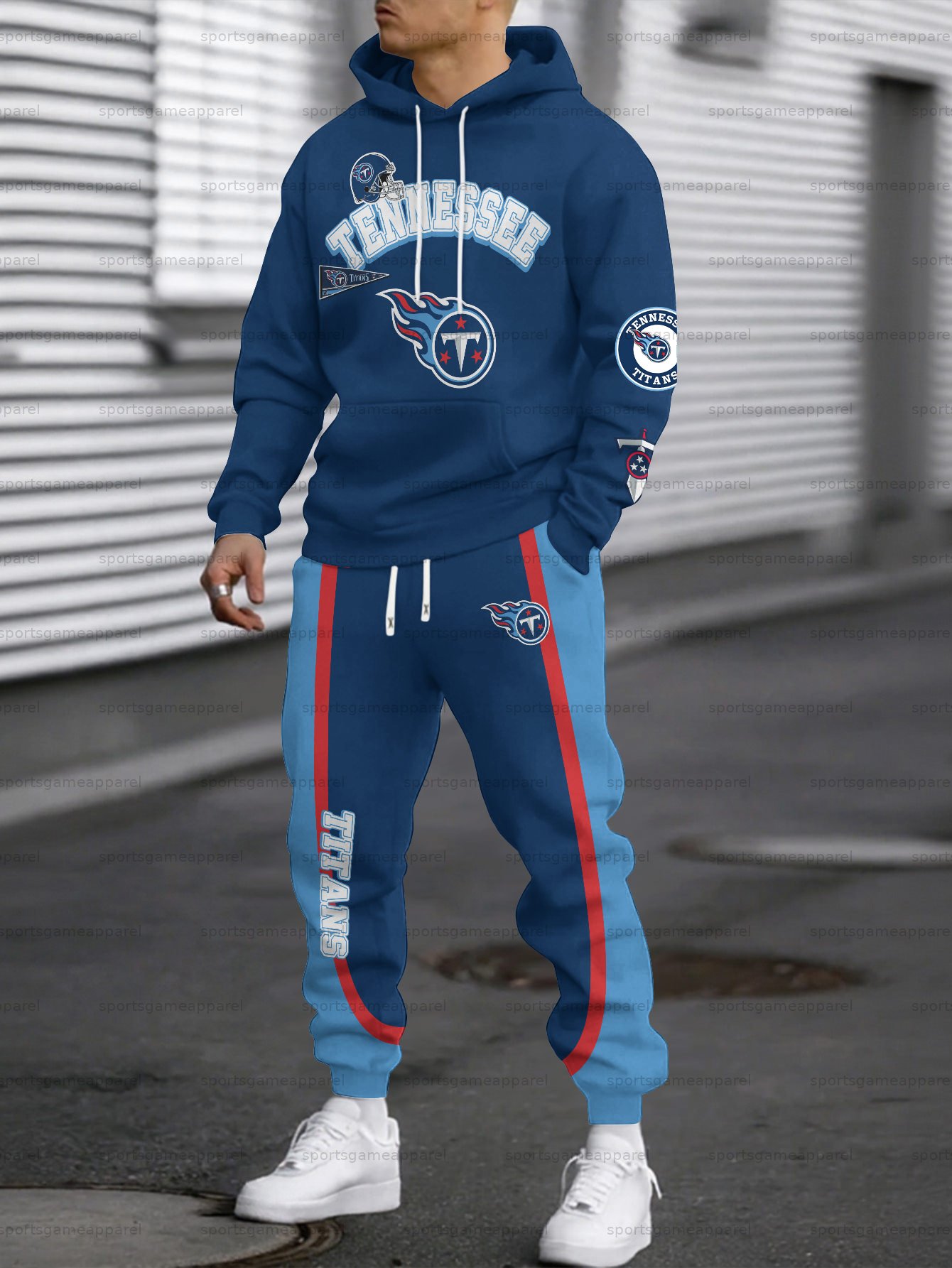 (Fleece-Lined Hoodie) Tennessee Titans Hoodie & Pants 2 Pieces Set