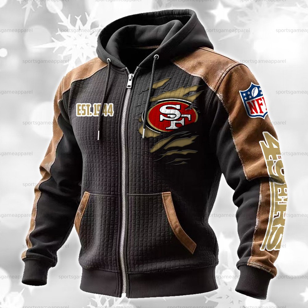 San Francisco 49ers Contrasting Shoulder Panels Hooded Zip-Up Jacket