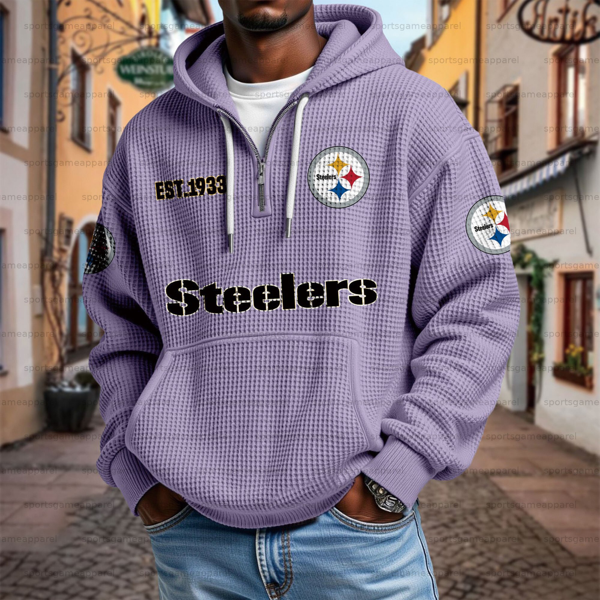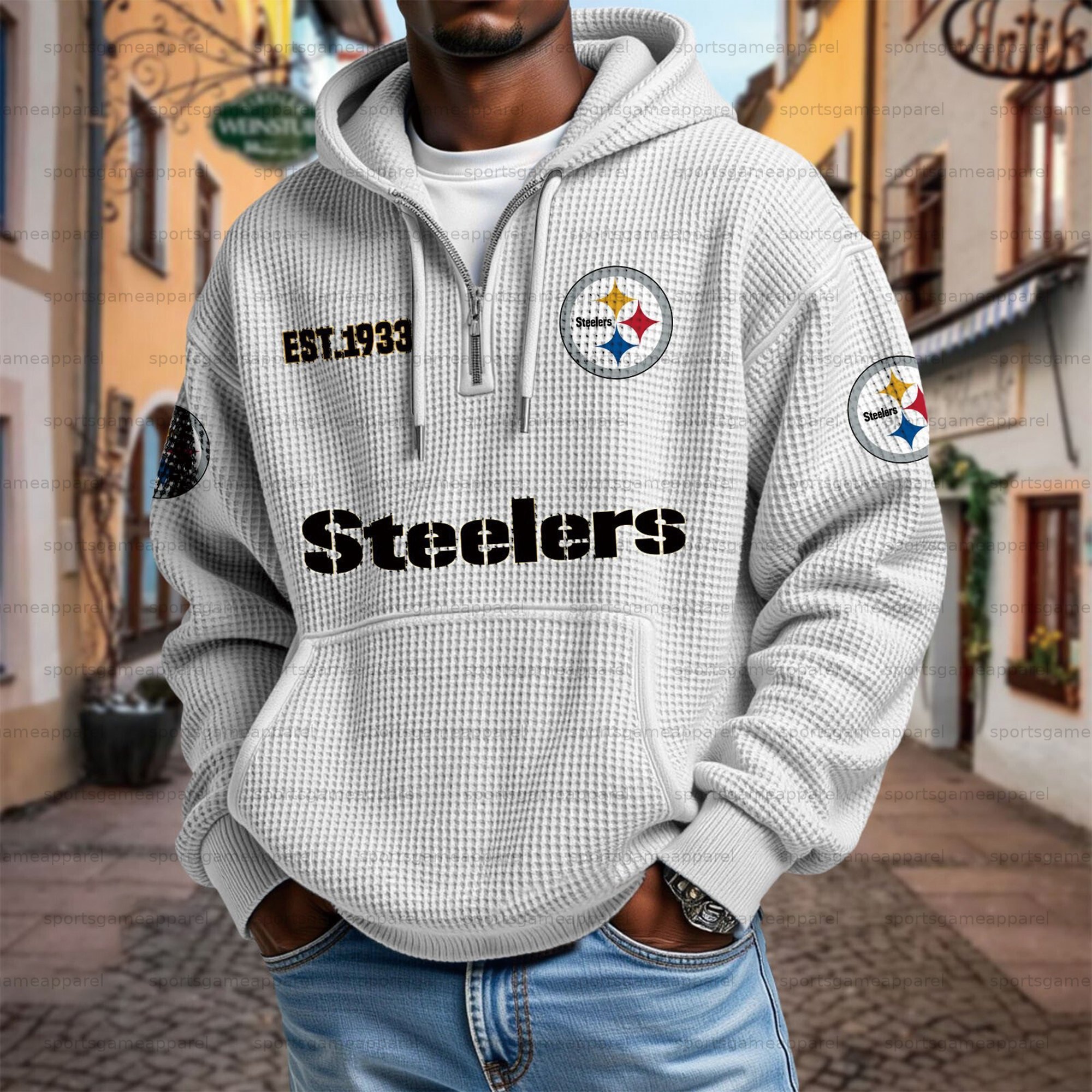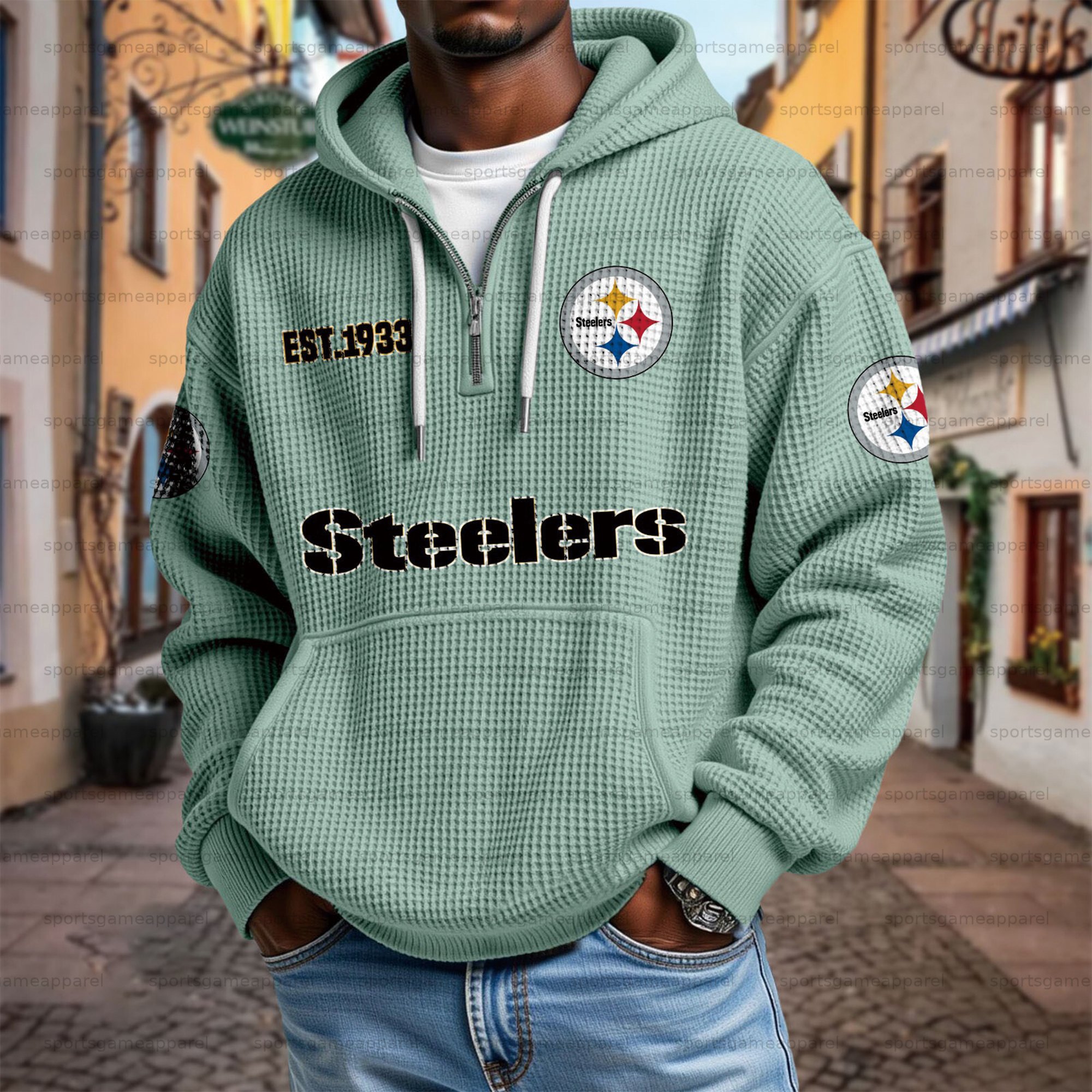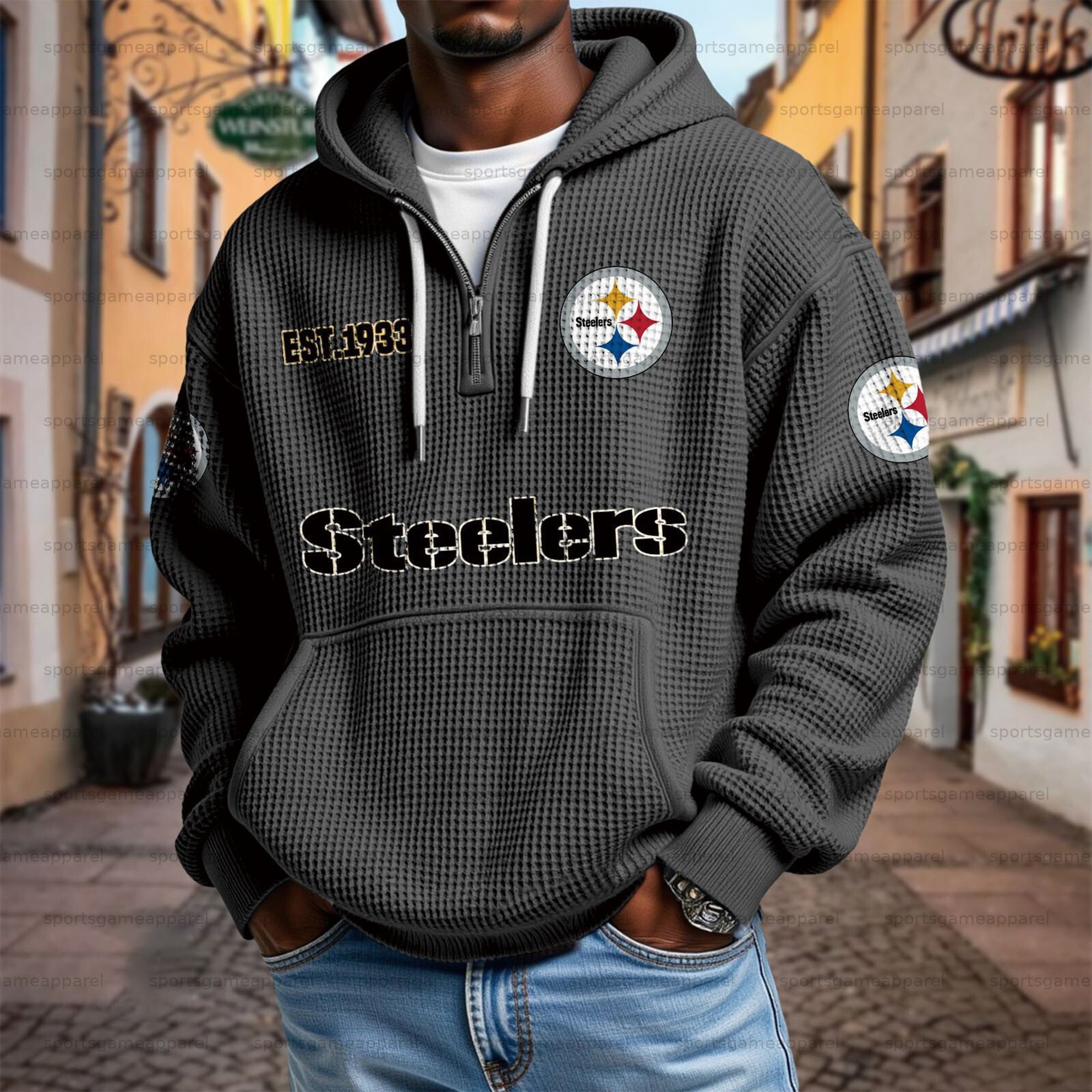Unisex "Pittsburgh Steelers" Graphic Streetwear Vintage Waffle Fabric hoodie