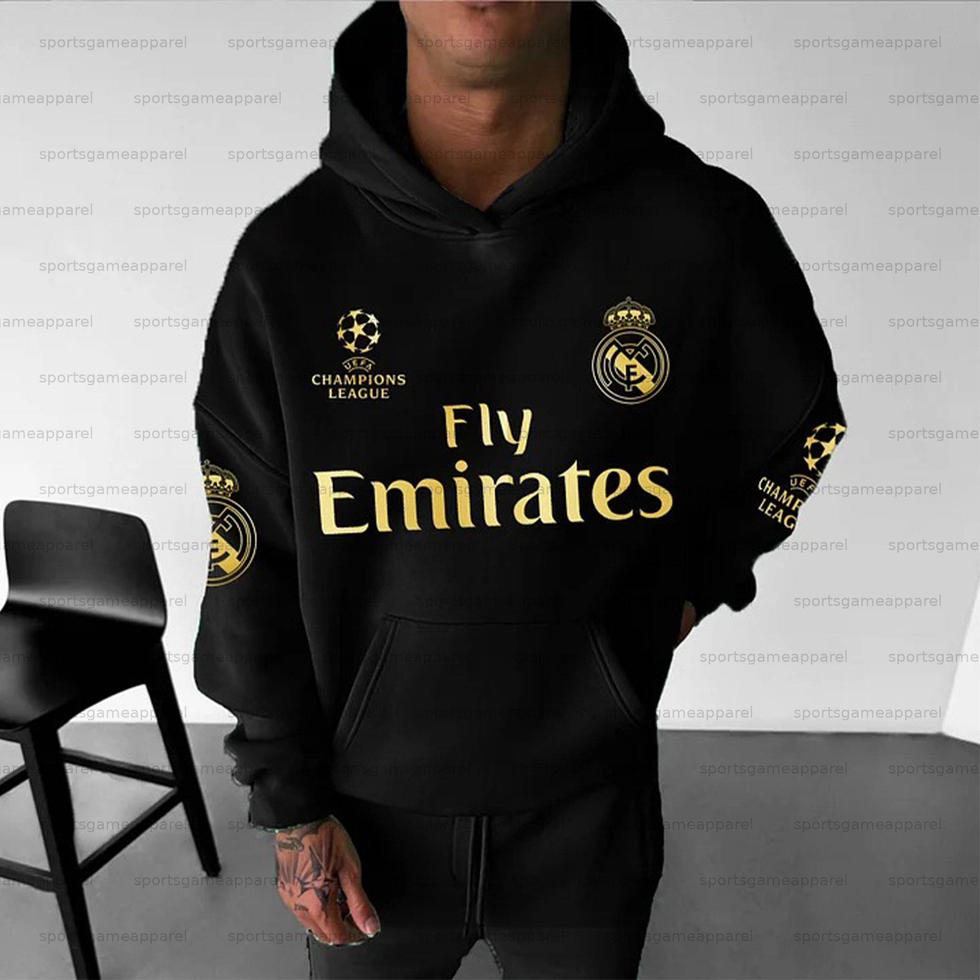 Unisex "UEFA" Graphic Streetwear Vintage Plush Hoodie