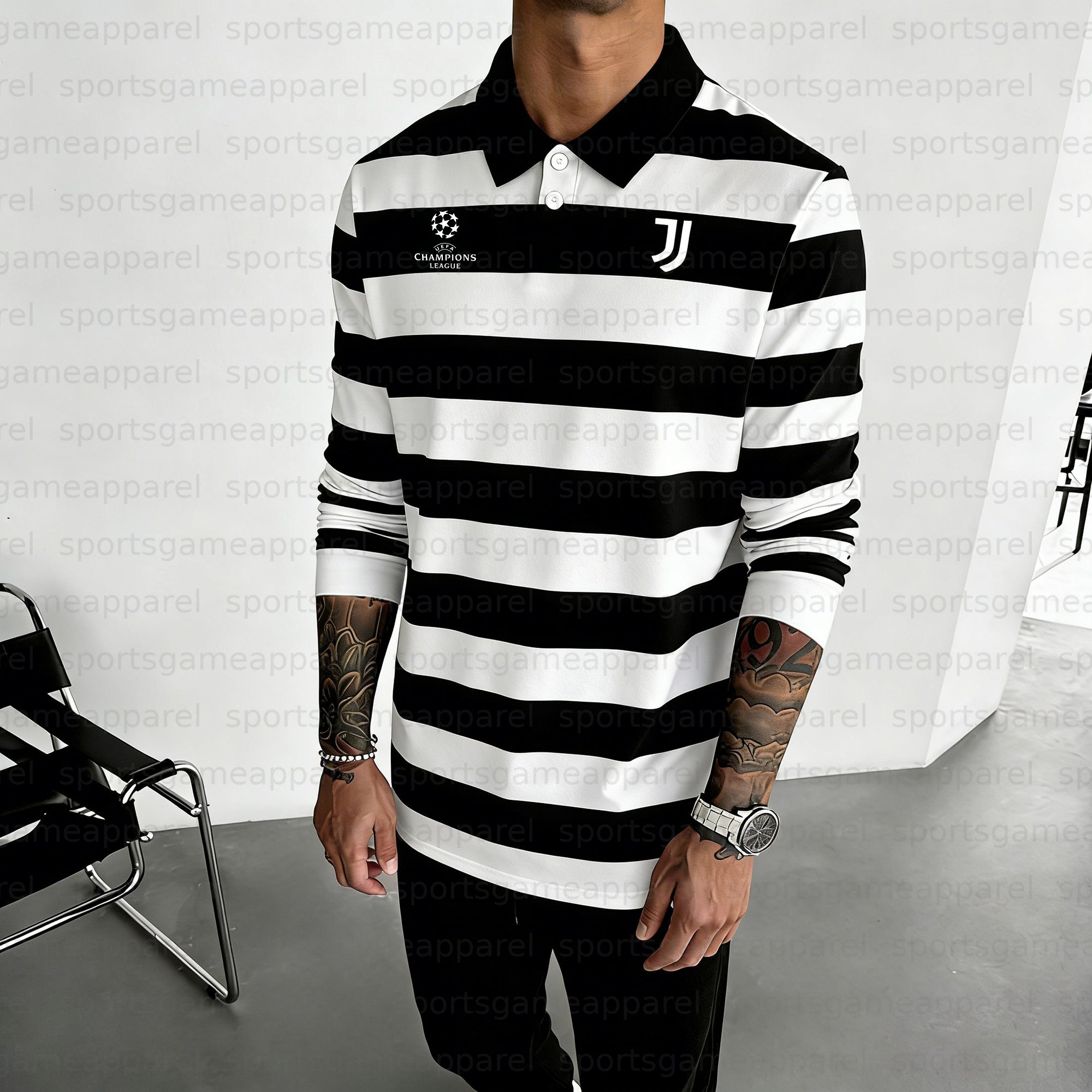 Unisex "Juventus" Inspired Trendy Long-sleeved Polo Shirt