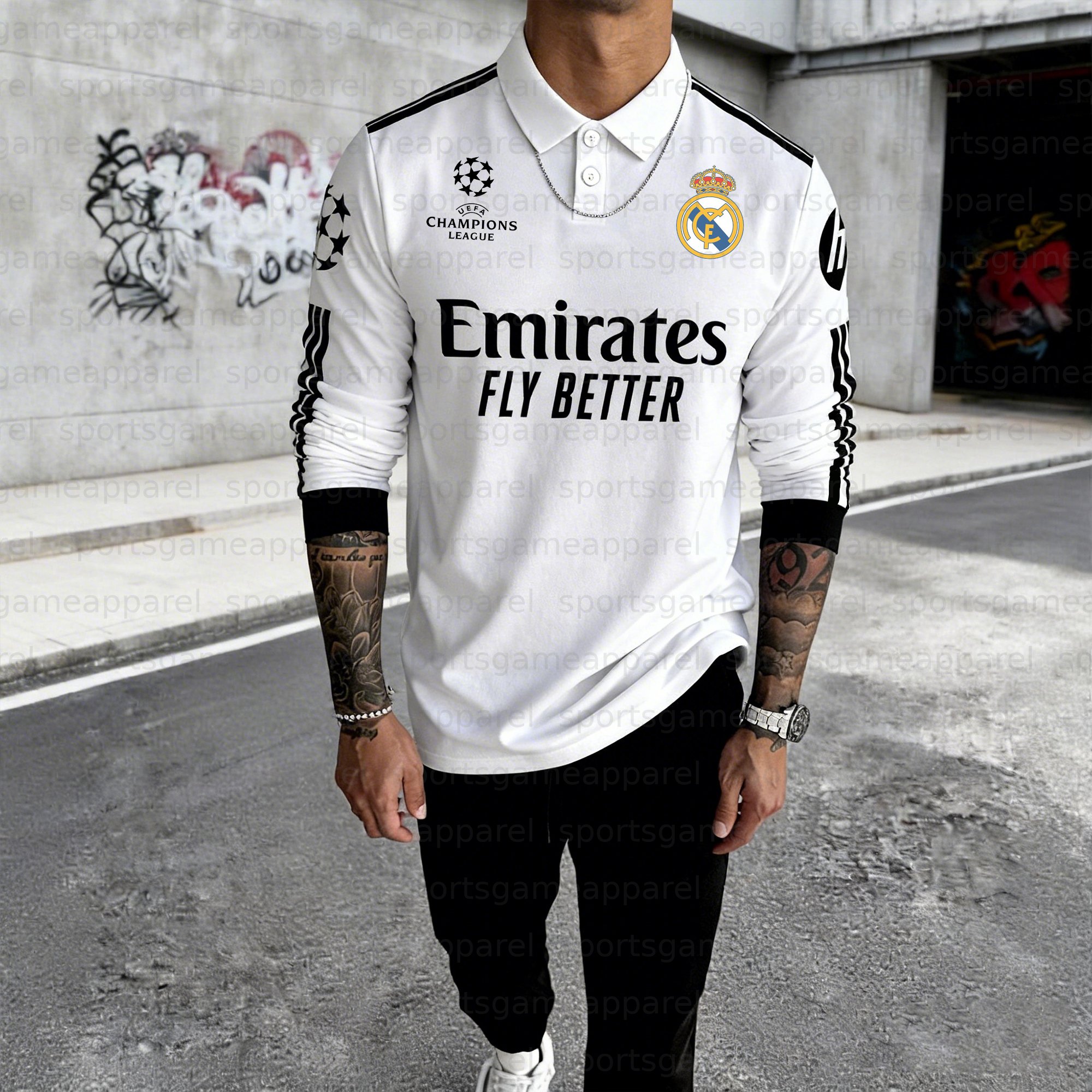 Unisex "Real Madrid" Inspired Trendy Long-sleeved Polo Shirt