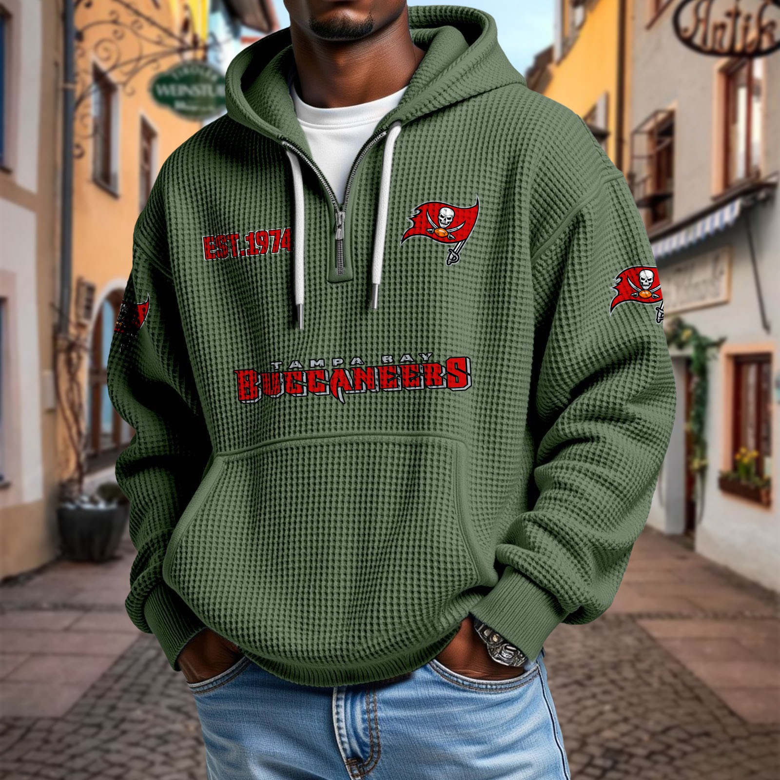 Unisex "Tampa Bay Buccaneers" Graphic Streetwear Vintage Waffle Fabric hoodie