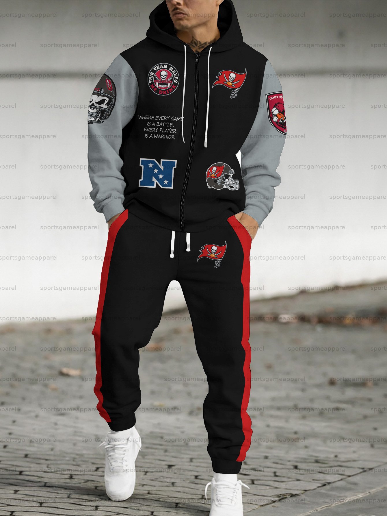 (Fleece-Lined Zip-up Hoodie)Tampa Bay Buccaneers Hoodie & Pants 2 Pieces Set