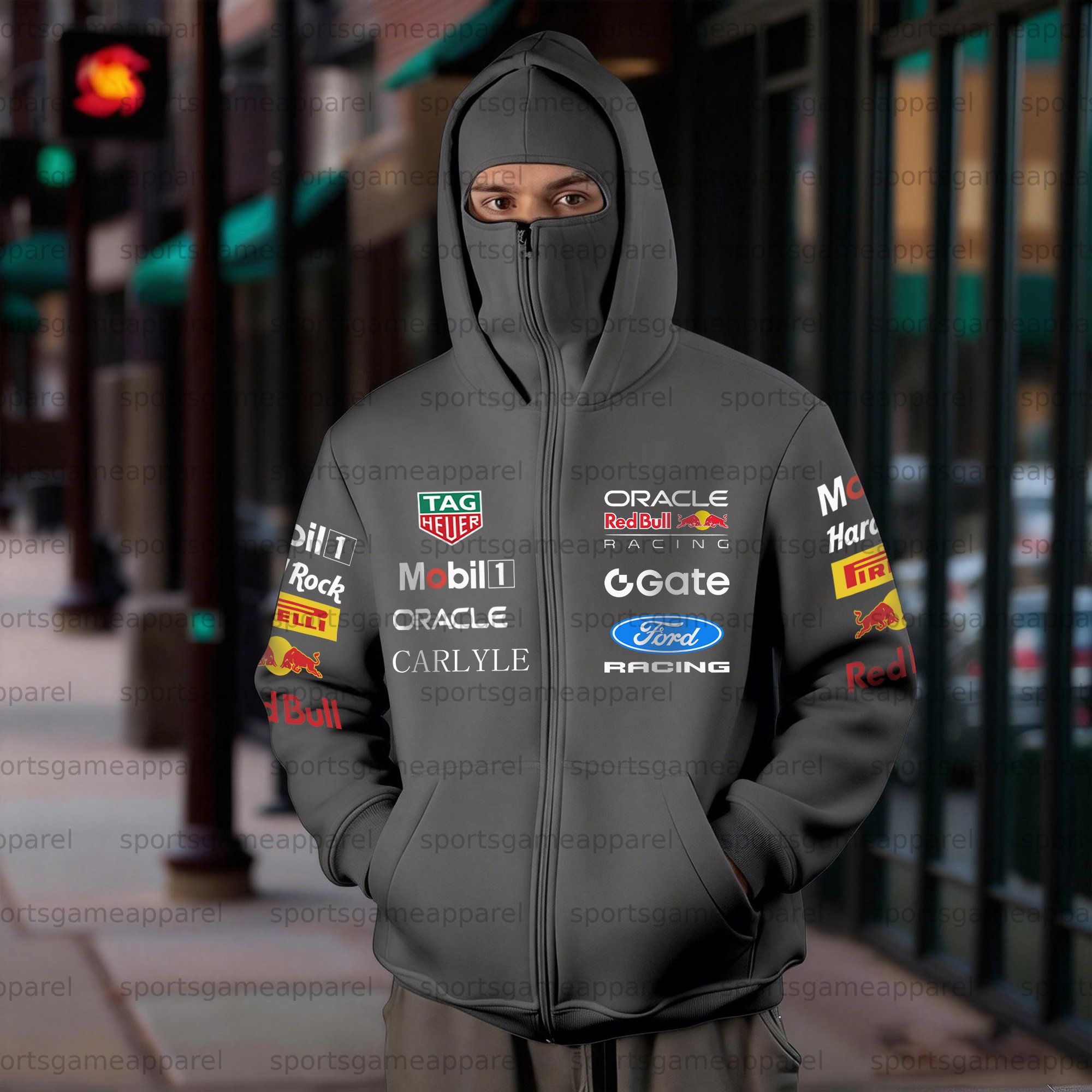 Unisex "F1” Double-layer Hooded Zip-up Sweatshirt