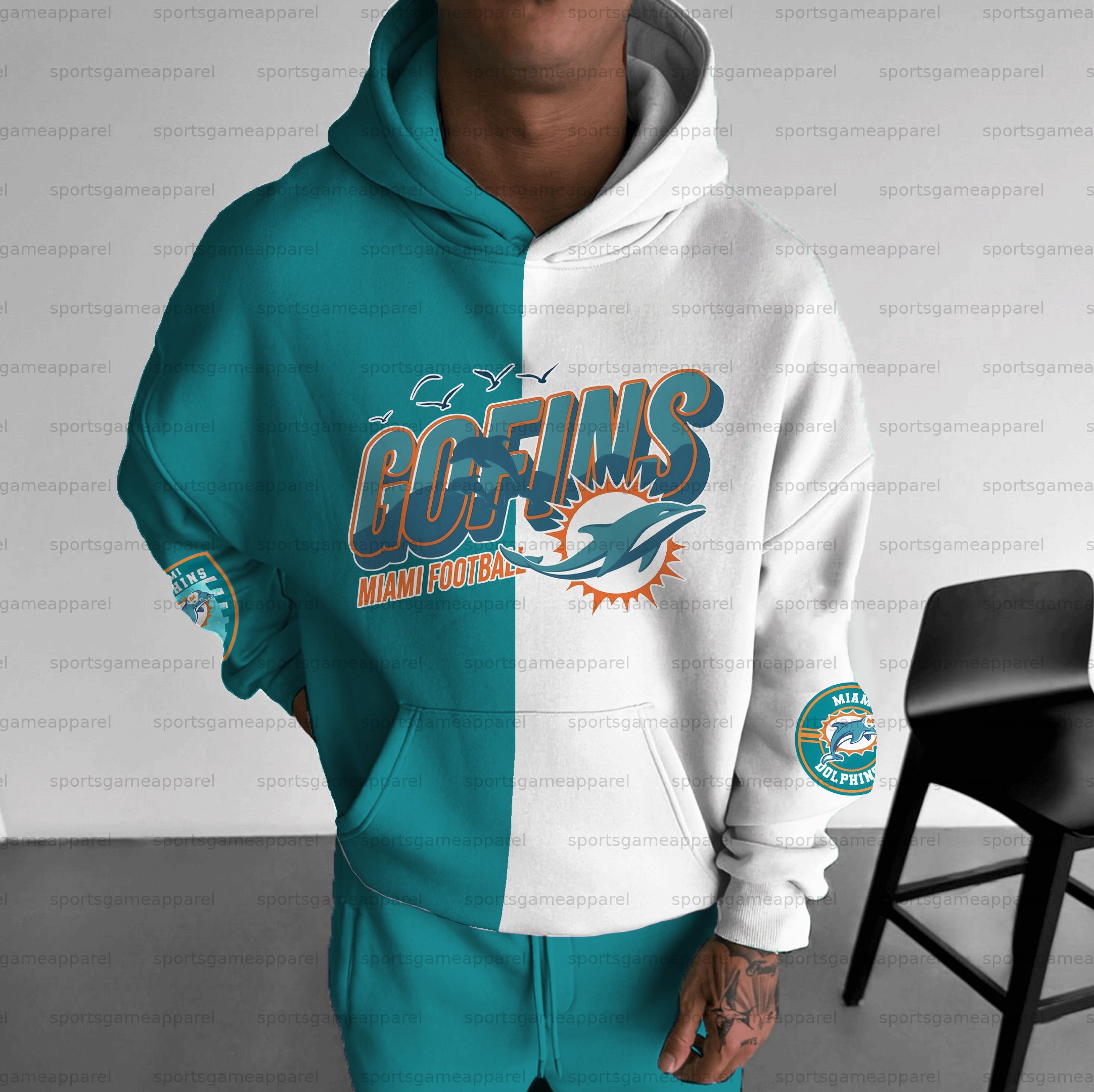 (Fleece-Lined Hoodie) Miami Dolphins Hoodie & Pants 2 Pieces Set