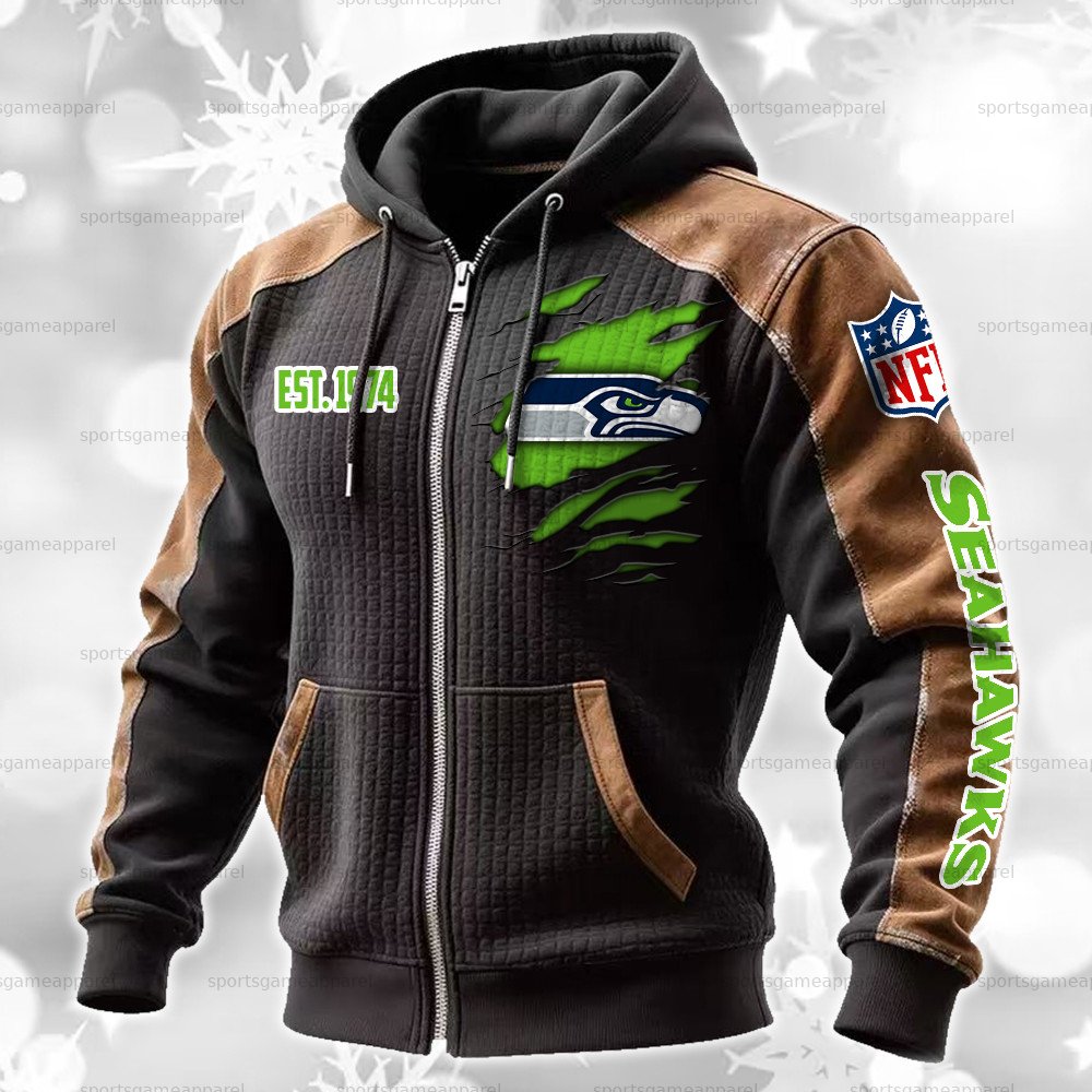 (Fleece-Lined Zip-up Hoodie) Seattle Seahawks Zip-up Hoodie & Pants 2 Pieces Set