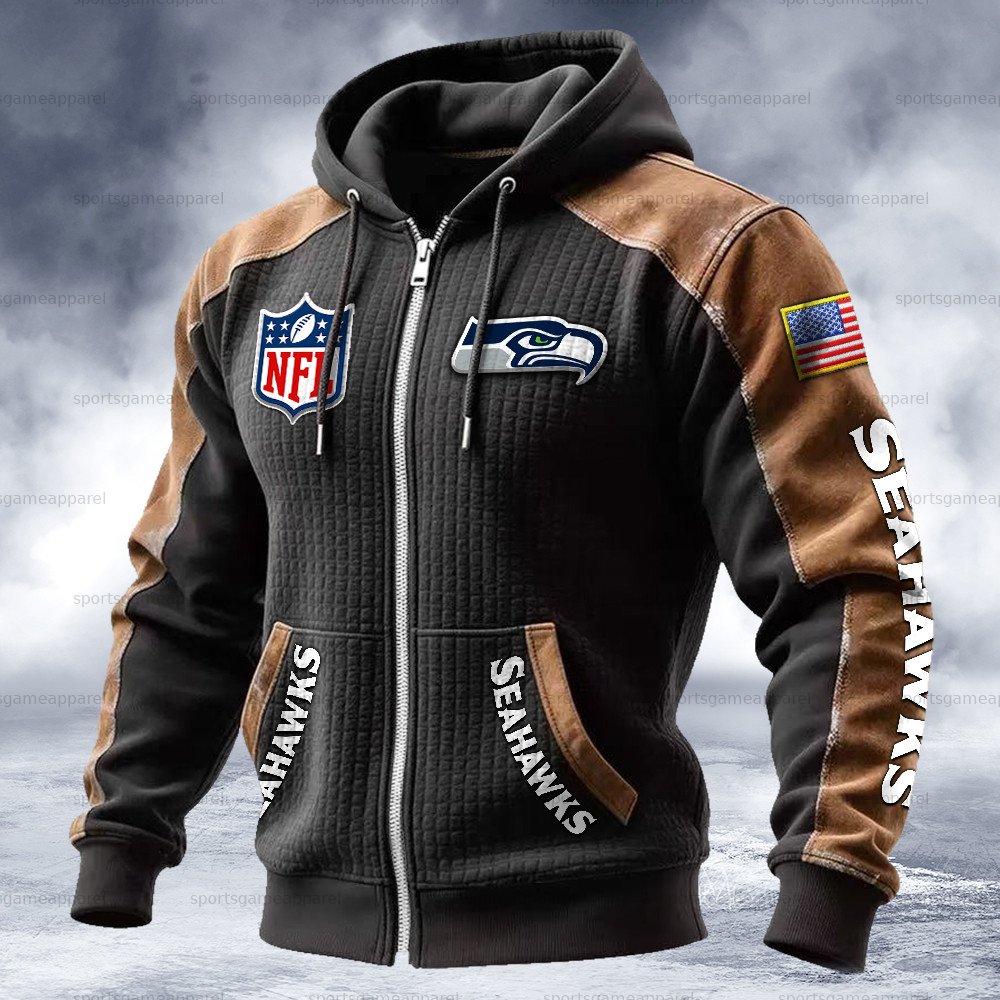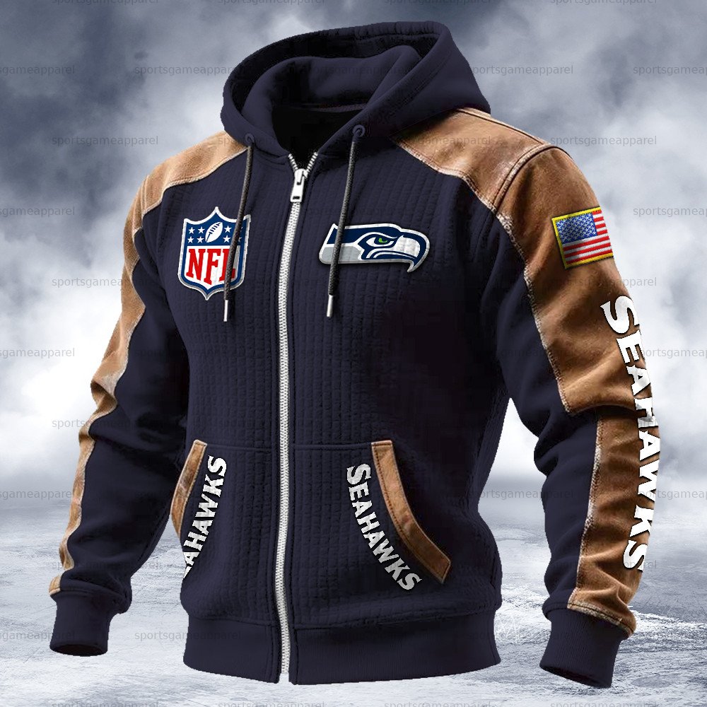 (Fleece-Lined Zip-up Hoodie)Seattle Seahawks Zip-up Hoodie & Pants 2 Pieces Set