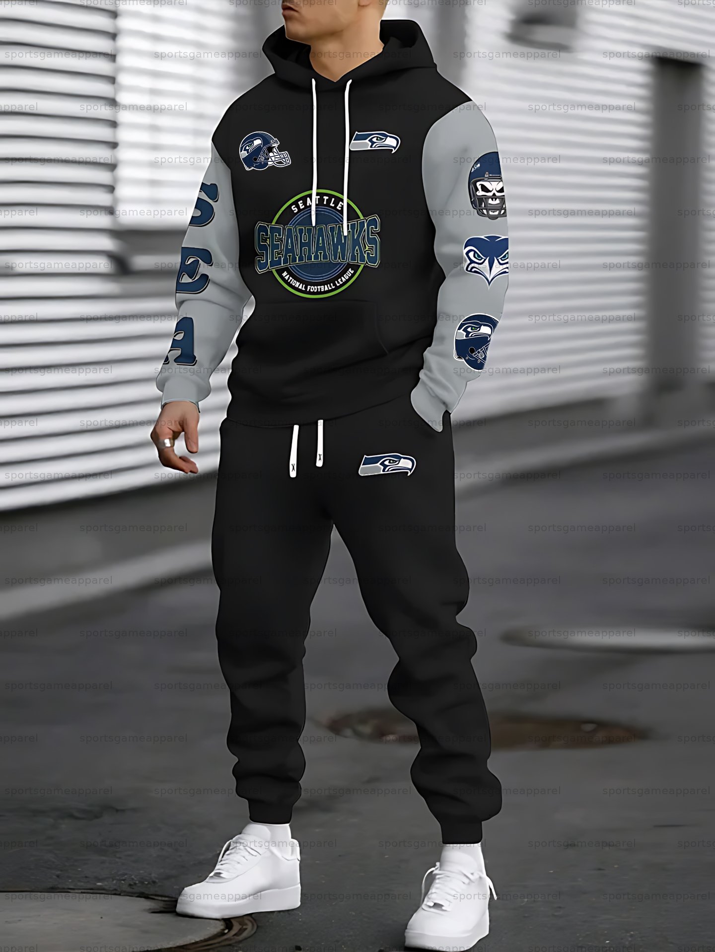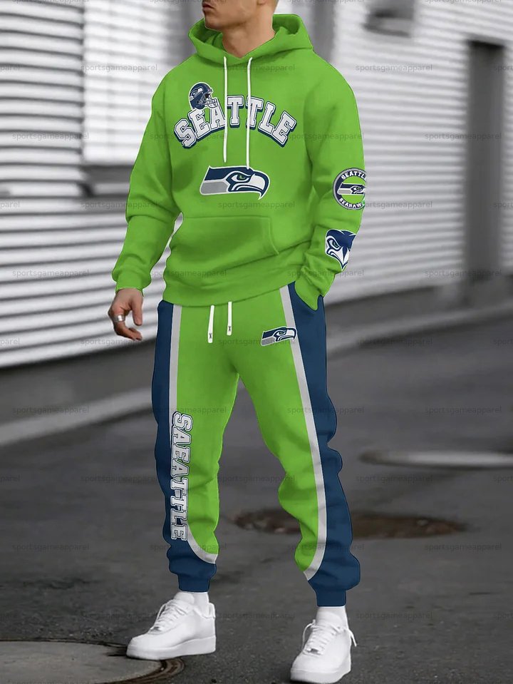 (Fleece-Lined Hoodie) Seattle Seahawks Hoodie & Pants 2 Pieces Set