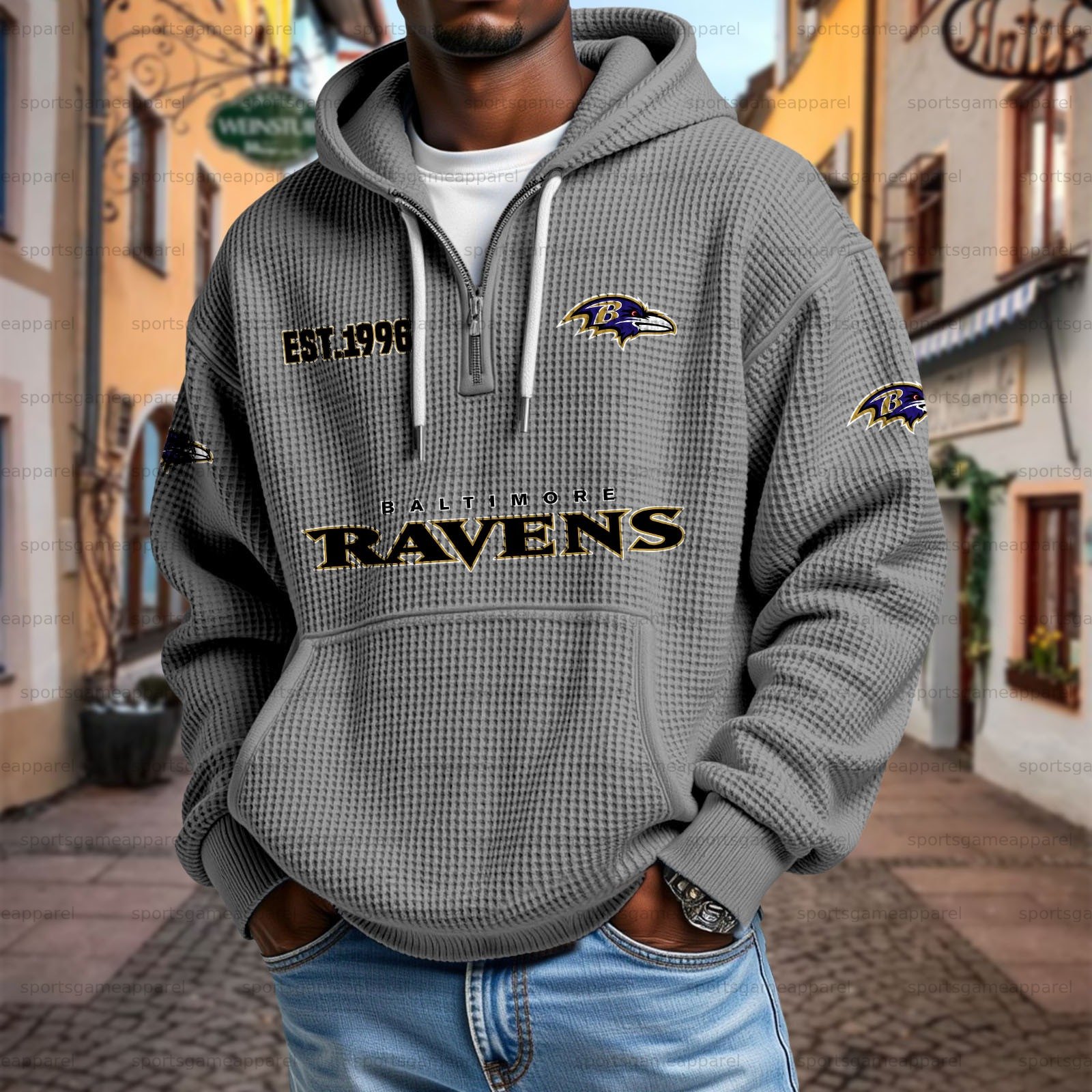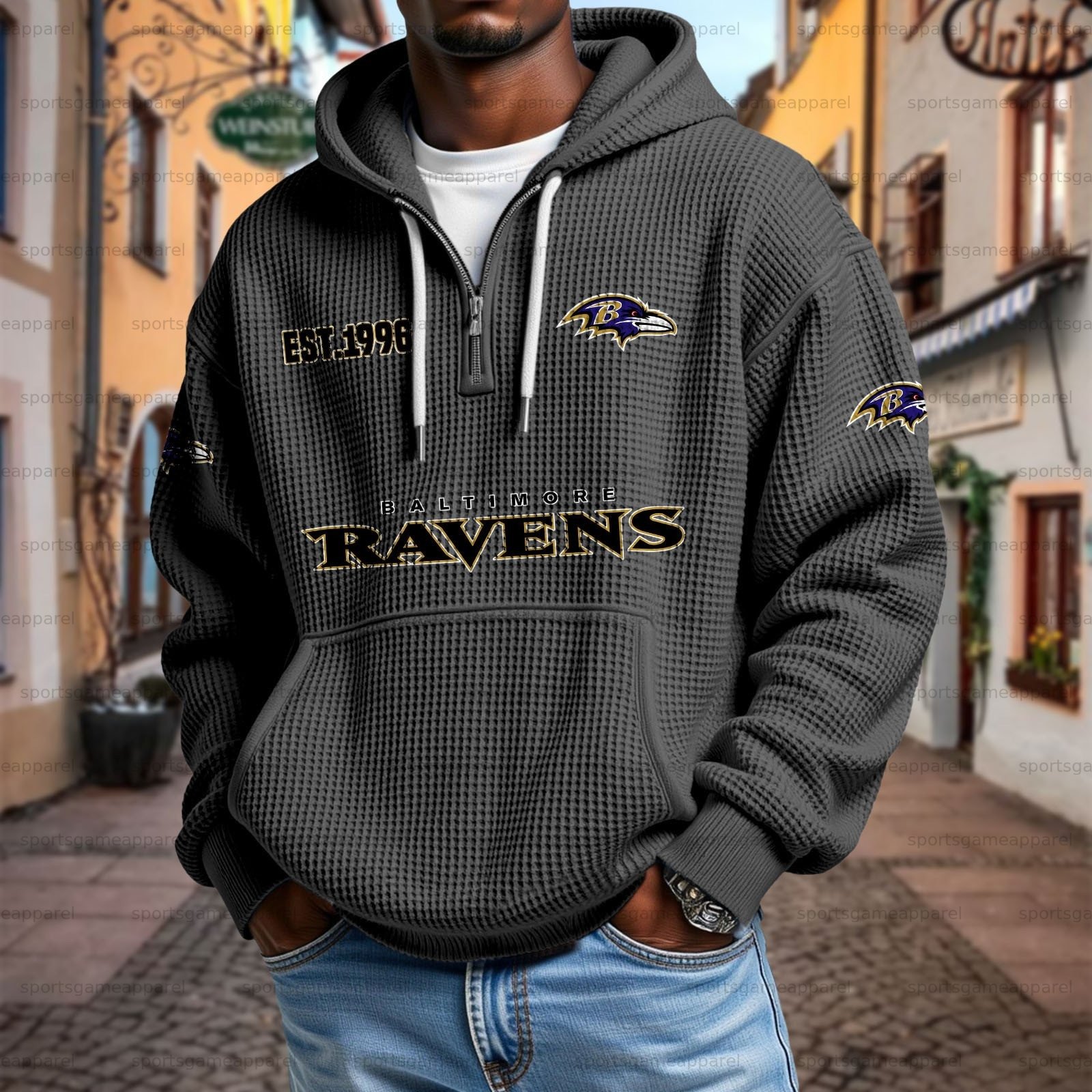 Unisex "Baltimore Ravens " Graphic Streetwear Vintage Waffle Fabric hoodie