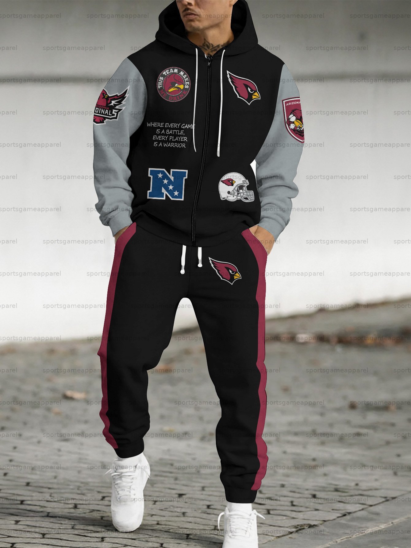 (Fleece-Lined Zip-up Hoodie) Arizona Cardinals Zip-up Hoodie & Pants 2 Pieces Set