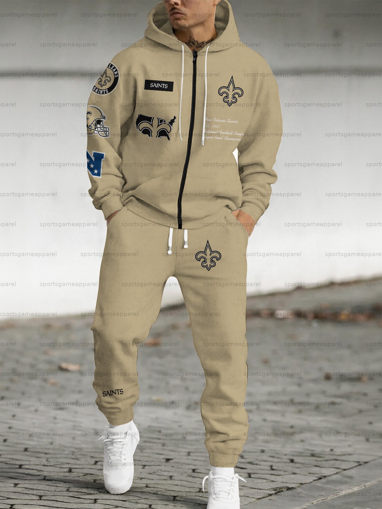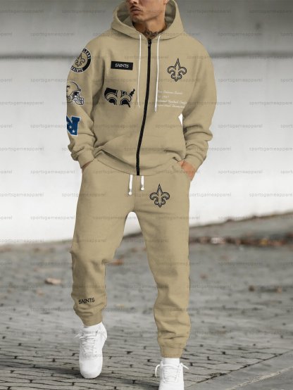 (Fleece-Lined Zip-up Hoodie) New Orleans Saints Zip-up Hoodie & Pants 2 Pieces Set