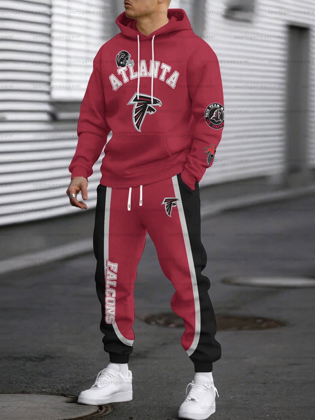 (Fleece-Lined Hoodie) Atlanta Falcons Hoodie & Pants 2 Pieces Set