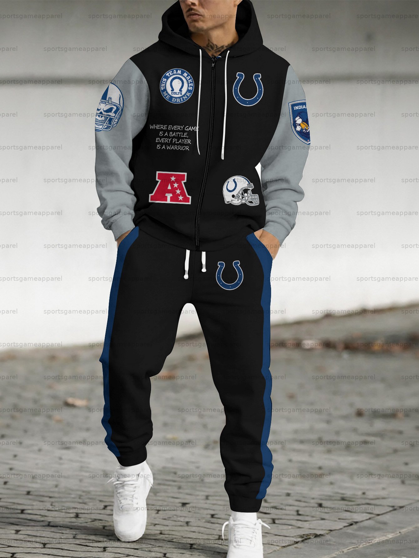 (Fleece-Lined Zip-up Hoodie) Indianapolis Colts Zip-up Hoodie & Pants 2 Pieces Set