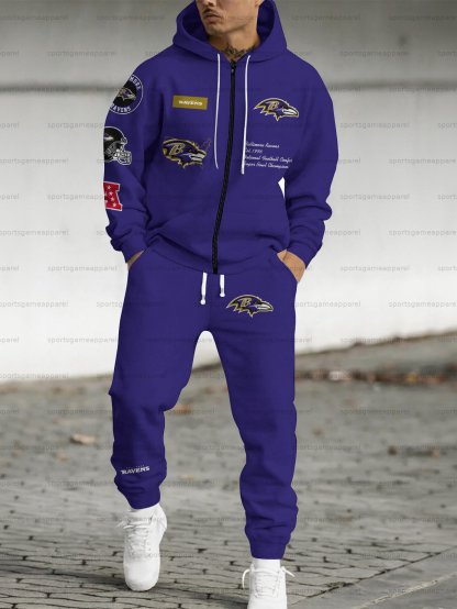 (Fleece-Lined Zip-up Hoodie) Baltimore Ravens Zip-up Hoodie & Pants 2 Pieces Set