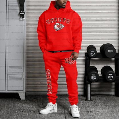 (Fleece-Lined Hoodie) ”Kansas City Chiefs“3D Printed Pullover Hoodie And Sweatpant 2pcs Tracksuits