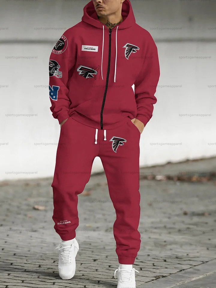(Fleece-Lined Zip-up Hoodie)Atlanta Falcons Zip-up Hoodie & Pants 2 Pieces Set
