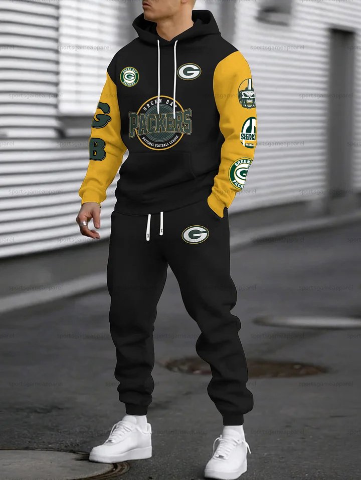 (Fleece-Lined Zip-up Hoodie)Green Bay Packers Hoodie & Pants 2 Pieces Set