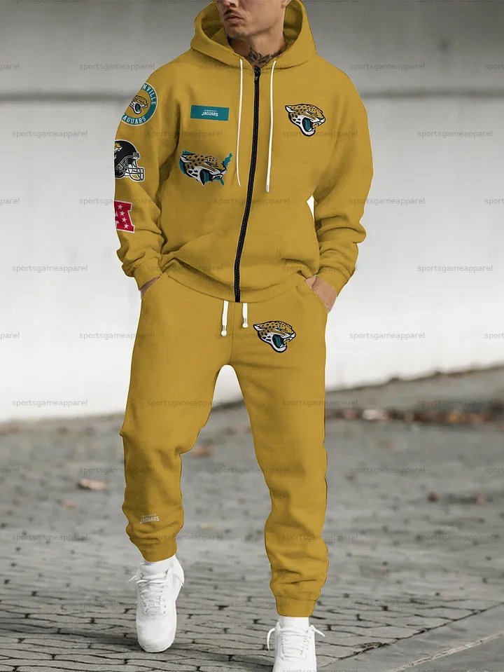 (Fleece-Lined Zip-up Hoodie)Jacksonville Jaguars Zip-up Hoodie & Pants 2 Pieces Set