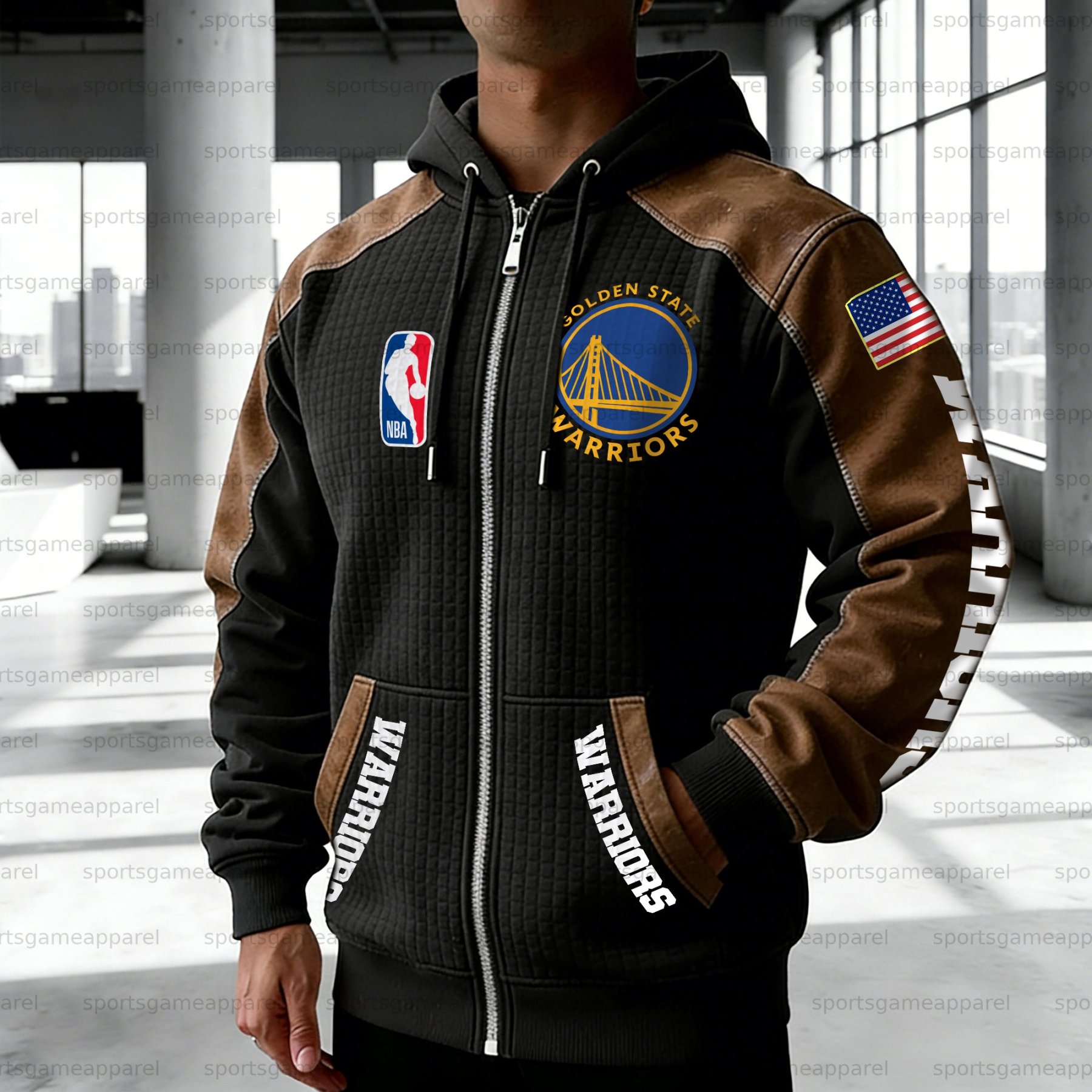 Golden State Warriors Contrasting Shoulder Panels Hooded Zip-Up Jacket