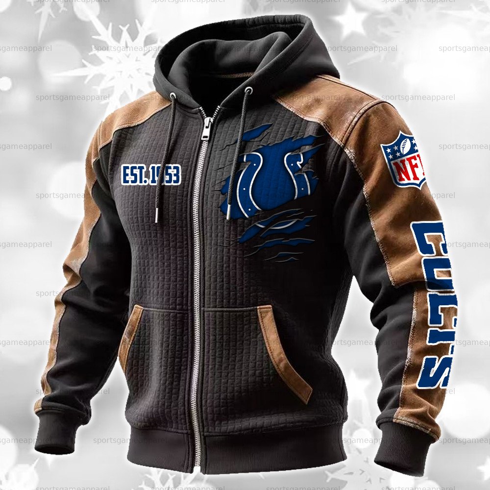 Indianapolis Colts Contrasting Shoulder Panels Hooded Zip-Up Jacket