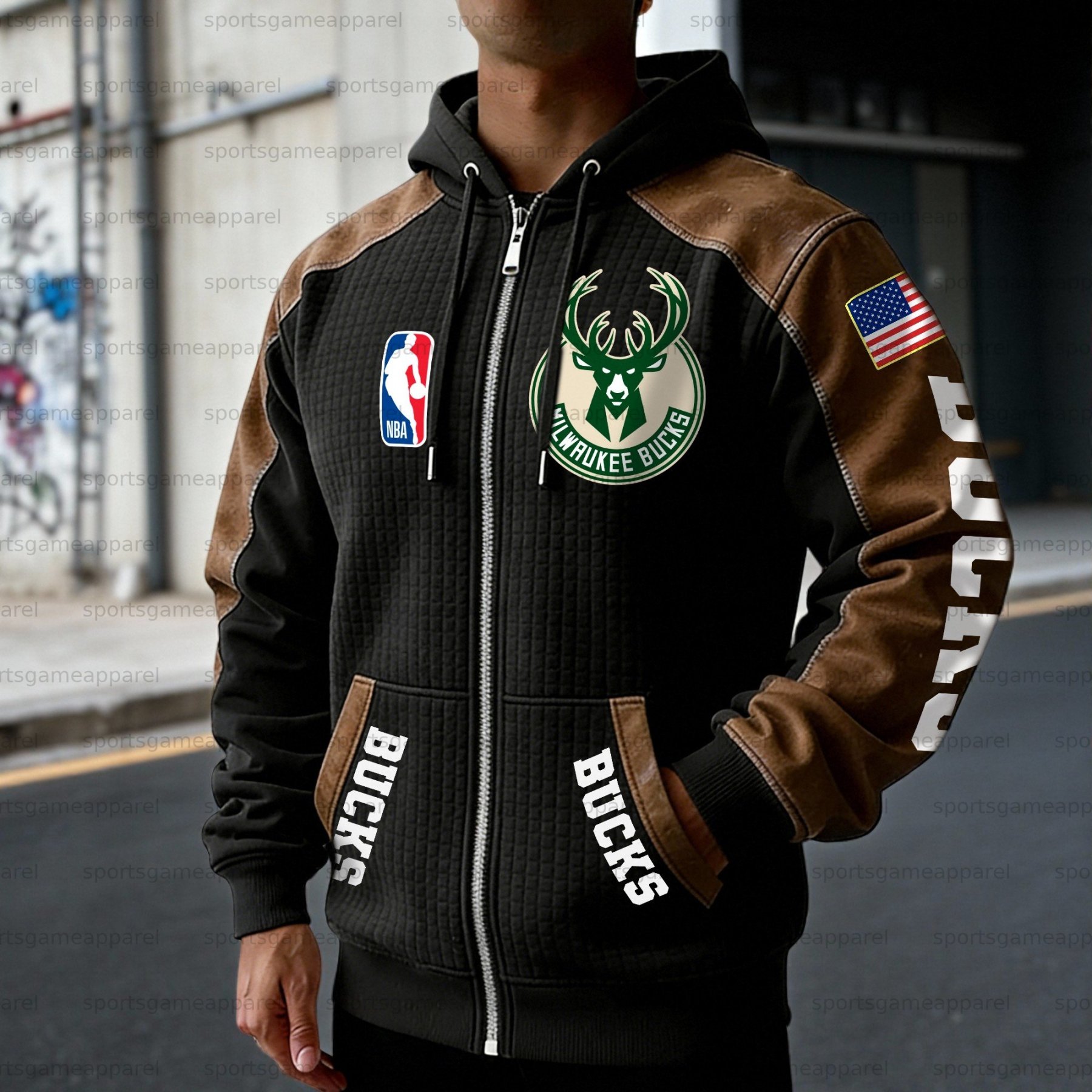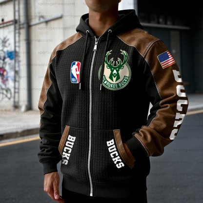 Milwaukee Bucks Contrasting Shoulder Panels Hooded Zip-Up Jacket