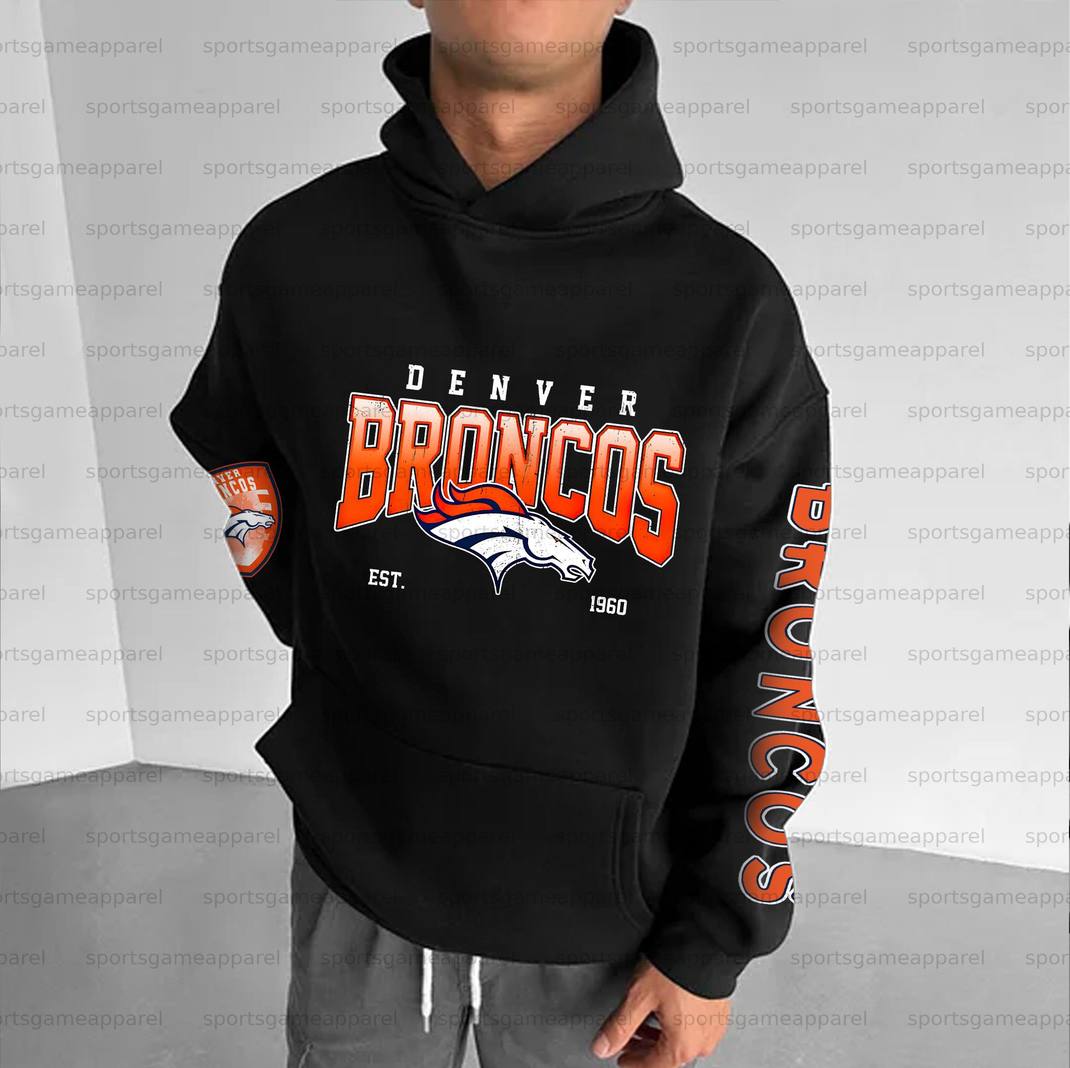 Unisex "Denver Broncos" Graphic Streetwear Vintage Plush Hoodie