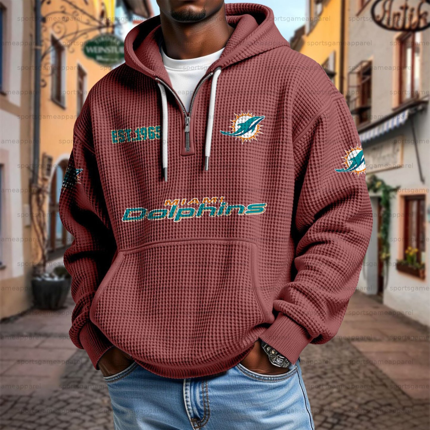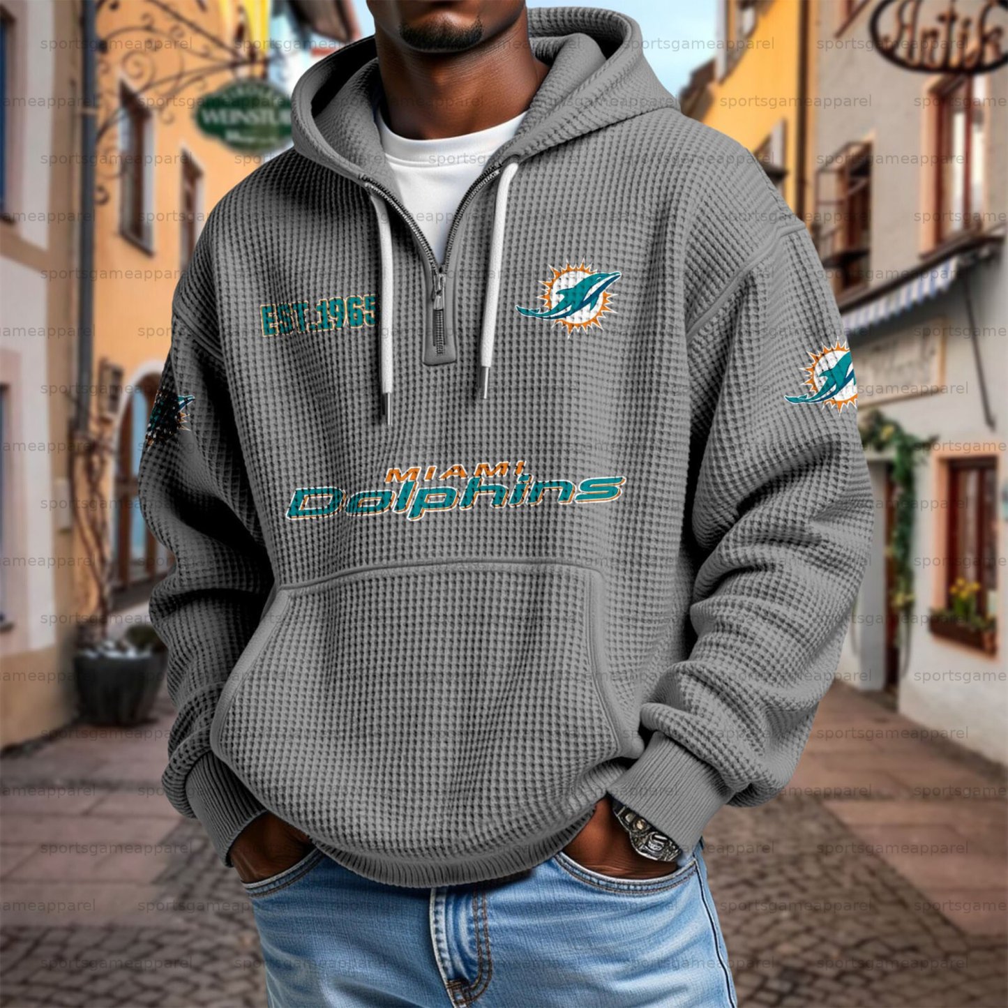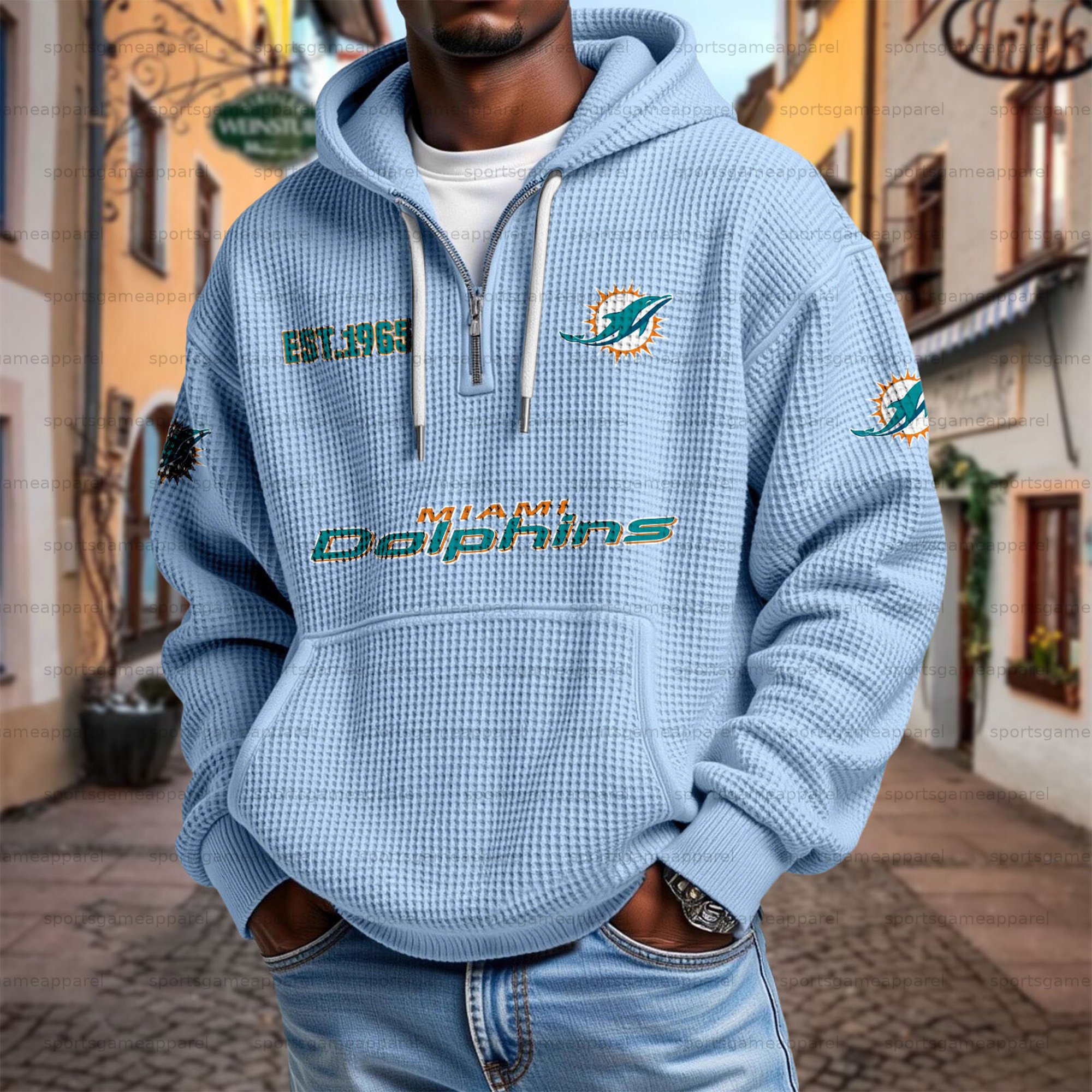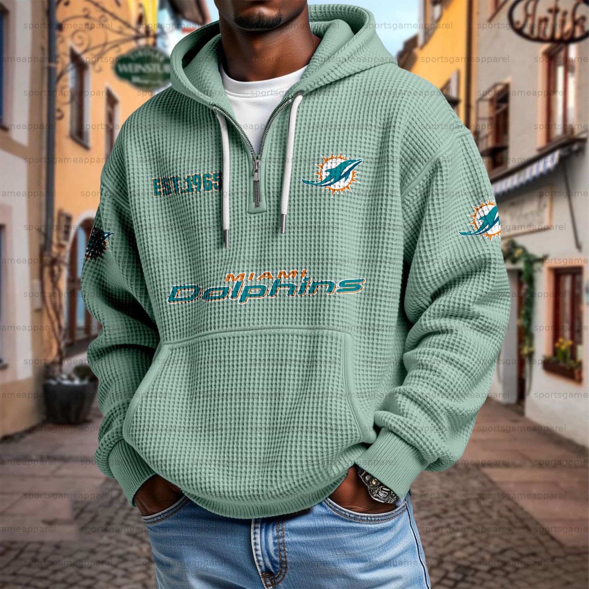 Unisex "Miami dolphins" Graphic Streetwear Vintage Waffle Fabric hoodie