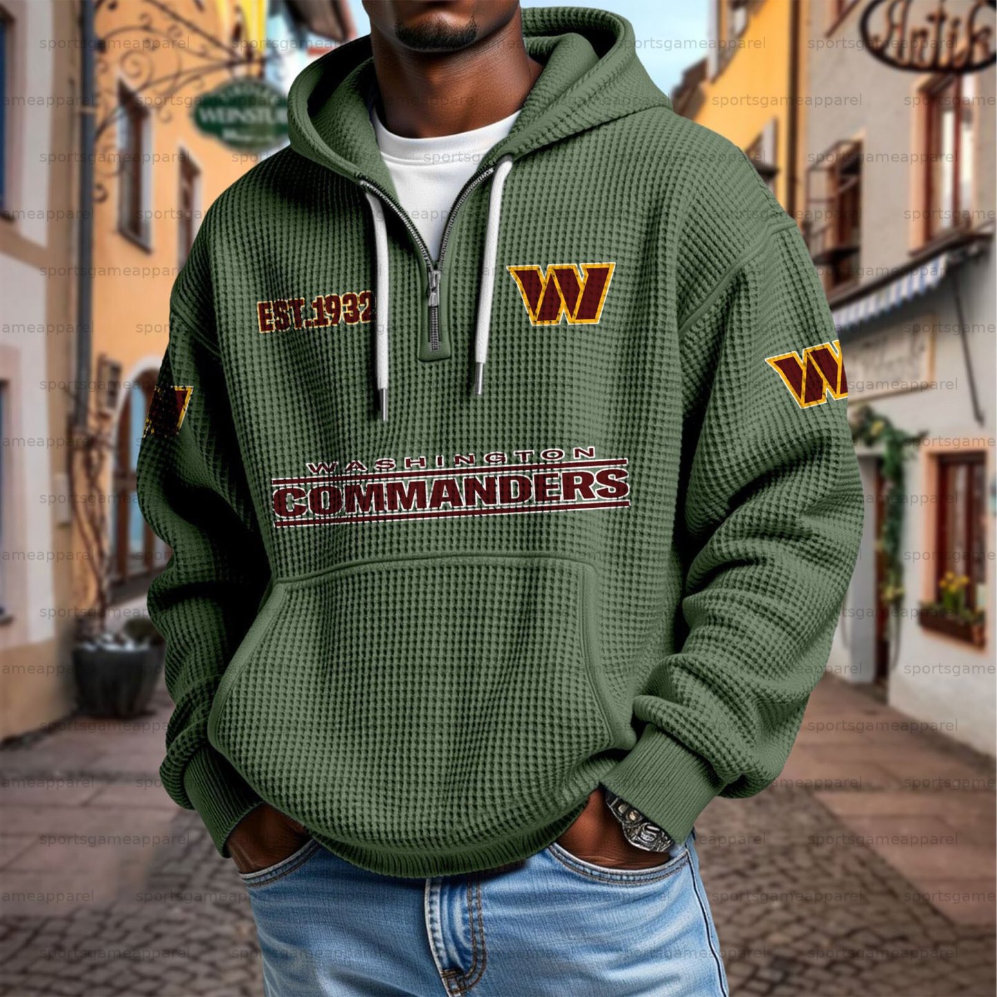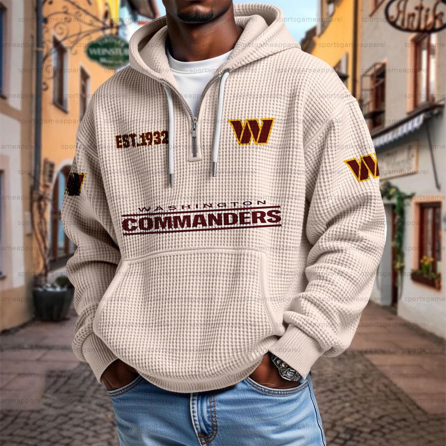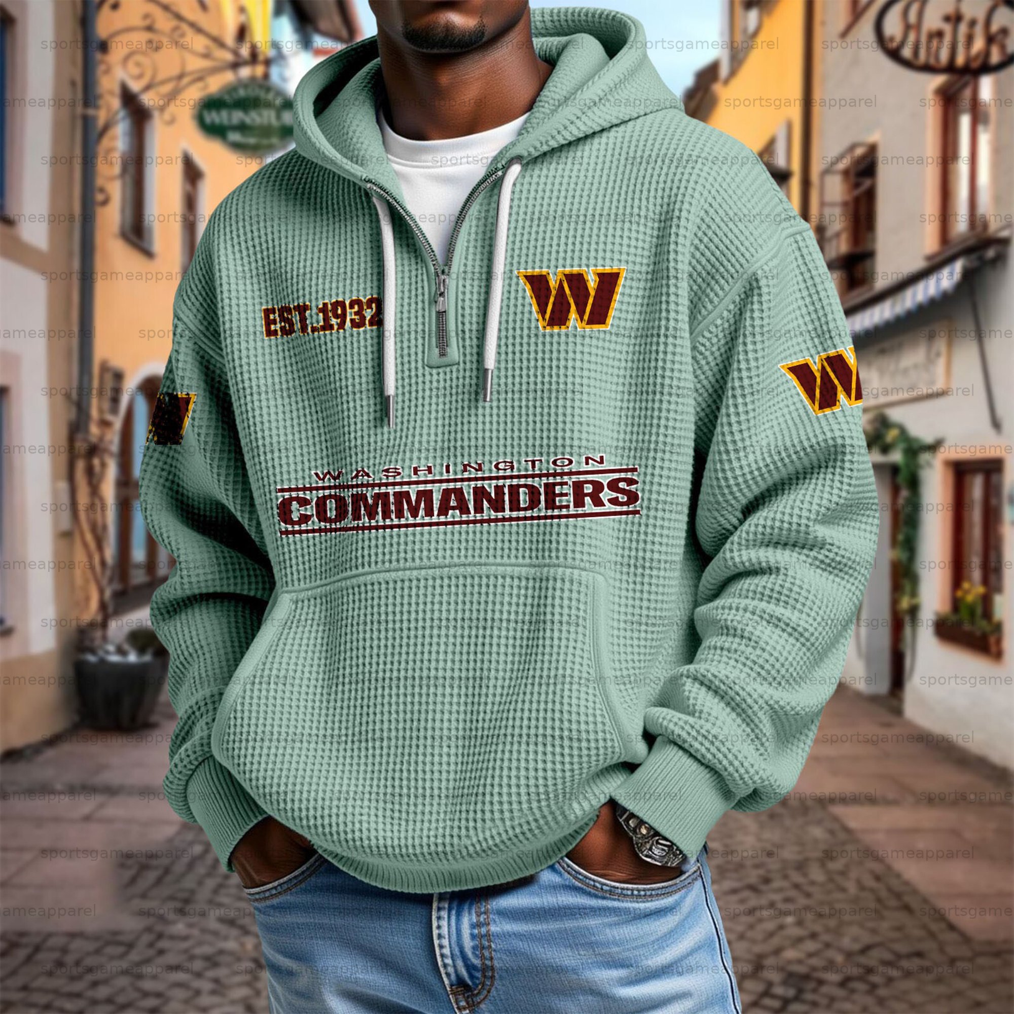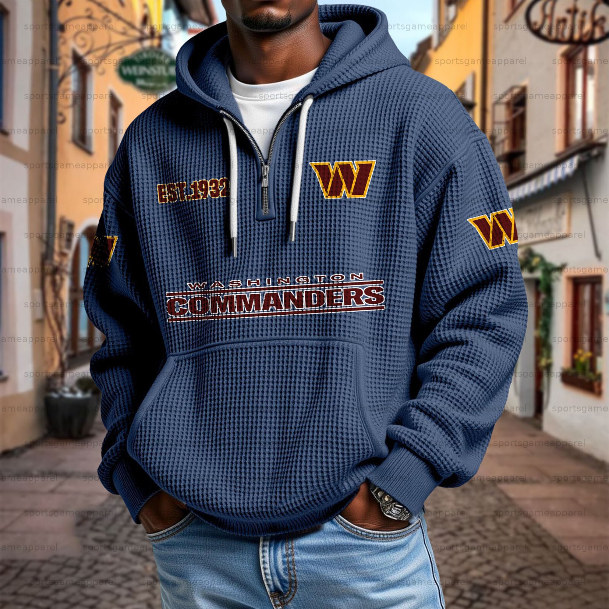 Unisex "Washington Commanders" Graphic Streetwear Vintage Waffle Fabric hoodie
