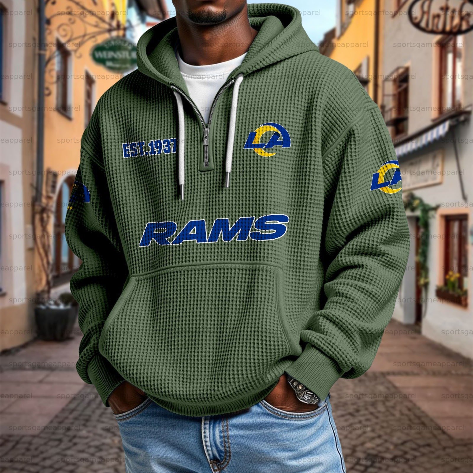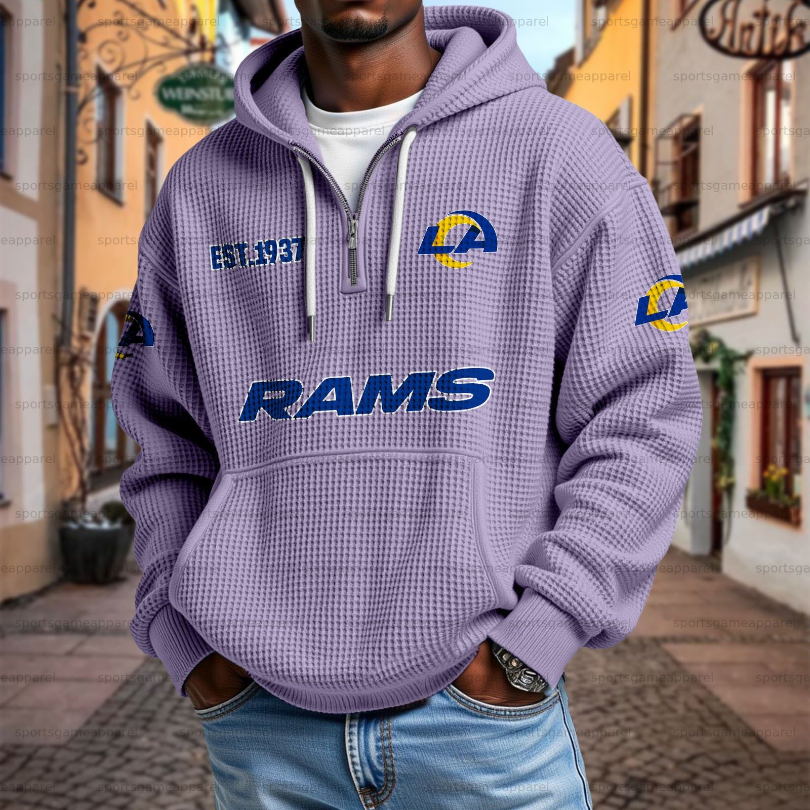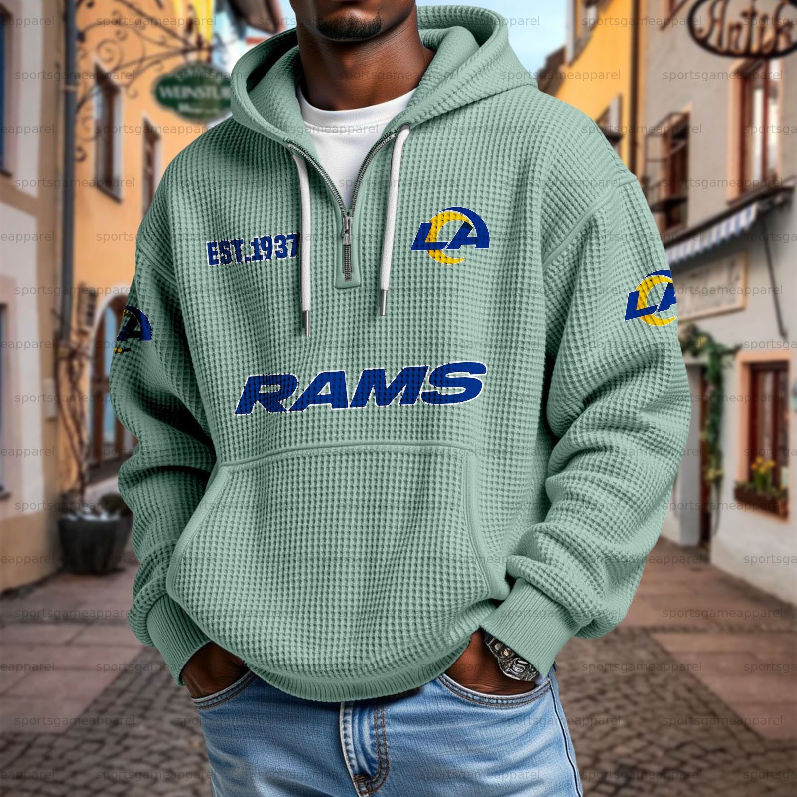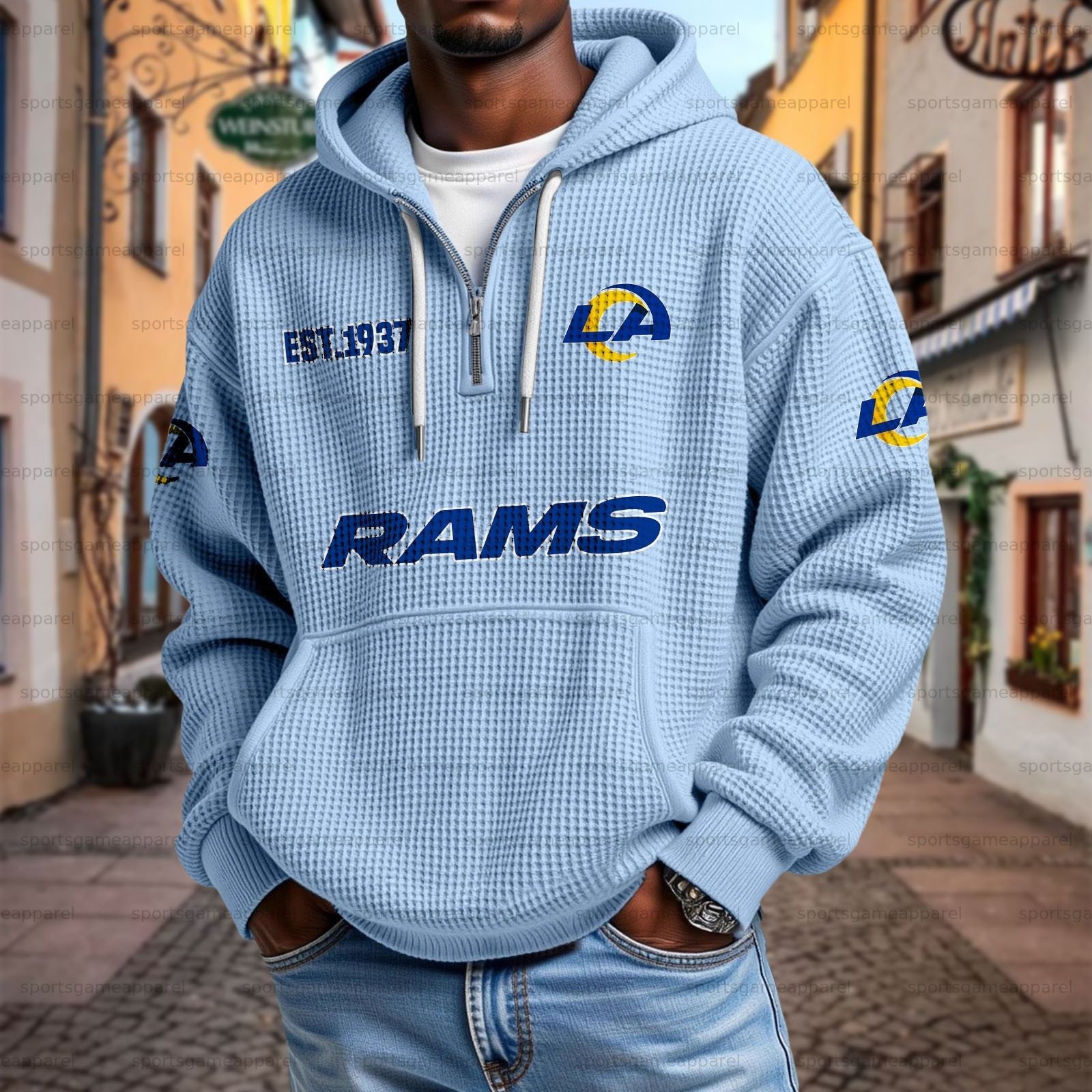 Unisex "Los Angeles Rams " Graphic Streetwear Vintage Waffle Fabric hoodie