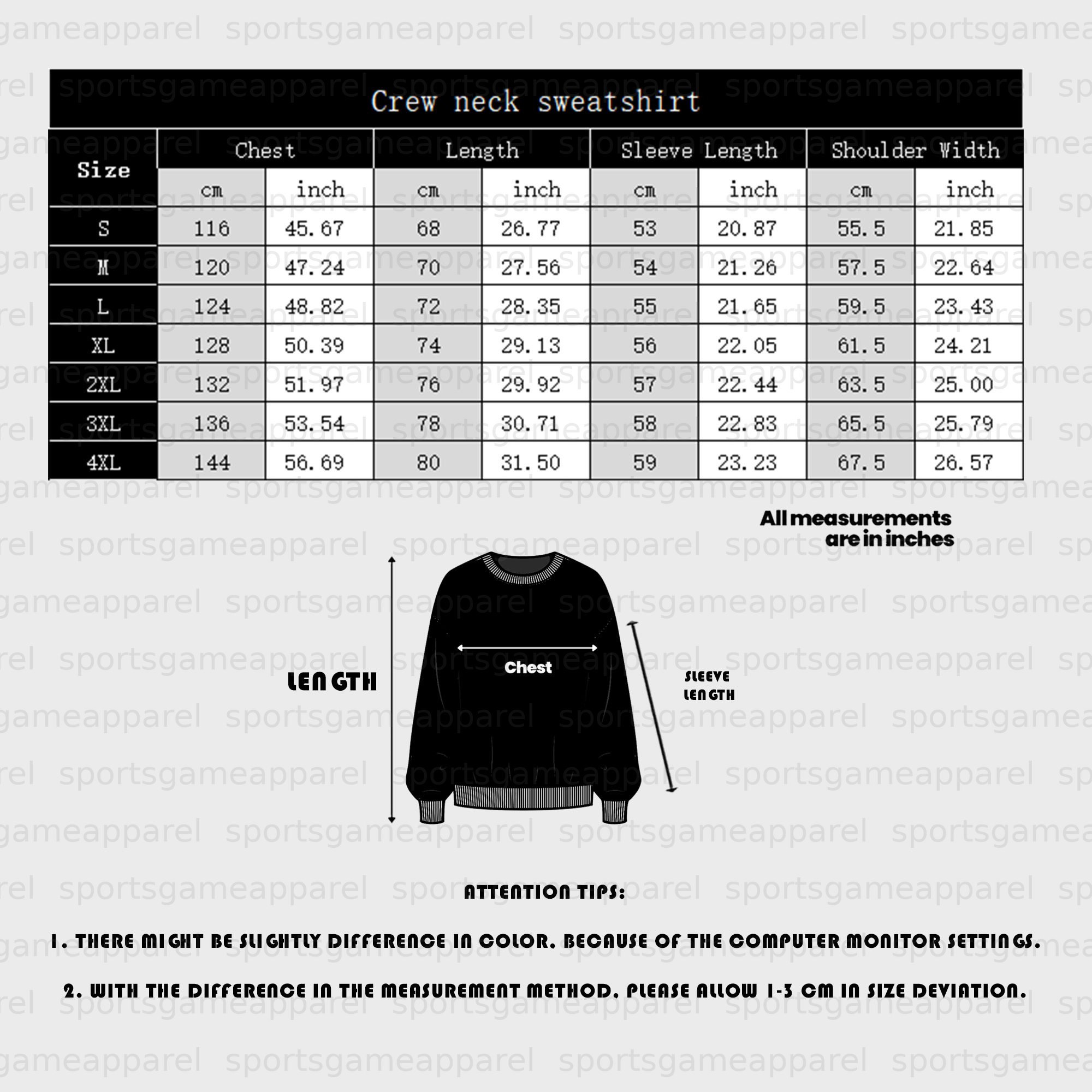 *If you have any question that not mentioned above, please contact our Customer Service at service@sportsgameapparel.com.