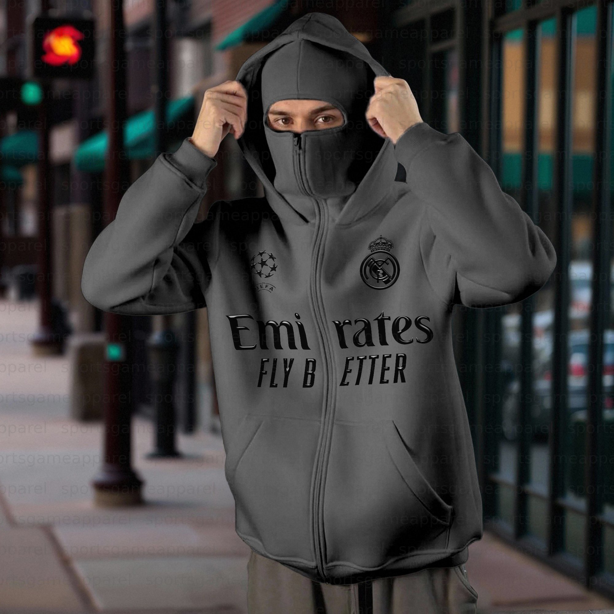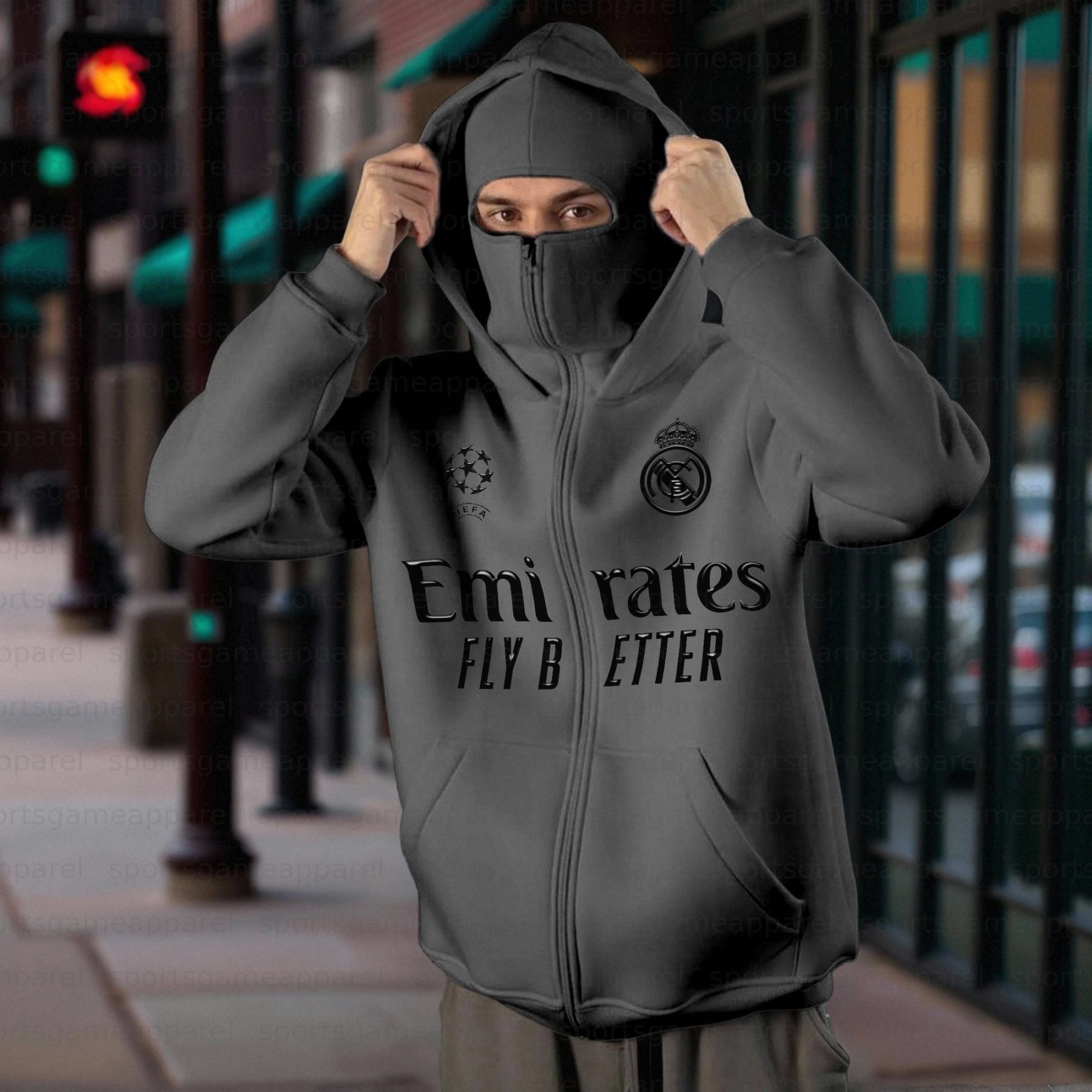 Unisex "Real Madrid” Double-layer Hooded Zip-up Sweatshirt